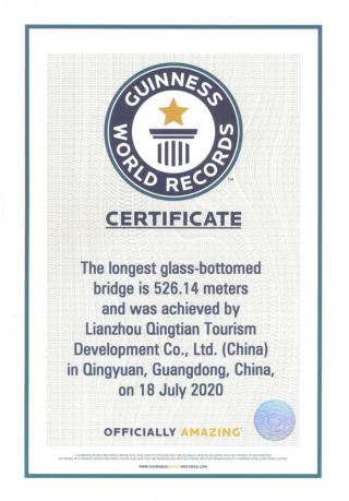 This glass bridge is suspended at a height of 201 meters, with a width of 8.8 meters. Spanning a length of 526.14 meters, it has broken the Guinness World Records as the world's longest suspension glass bridge. Its completion is a miracle. So far, it has become a new local landmark, and has been attracting a large number of tourists and helping inject vitality into local tourism industry.
