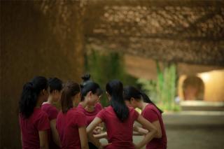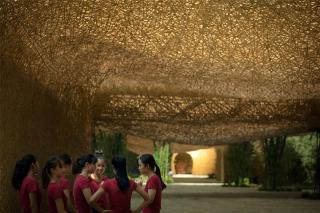 In acknowledgment to the theatrical spirit of the Impression Sanjie Liu, moments of performance make its way into many parts of the design: The hand weaving, bamboo playing off the tension of one another. The topography of the canopy ceiling dancing between columns of bamboo as if unsupported. Even the way guests are intended to move from lantern to lantern, in a narrative of interaction. Together these subtle hints encourage a particular frame of mind, readying the guest for the main feature.