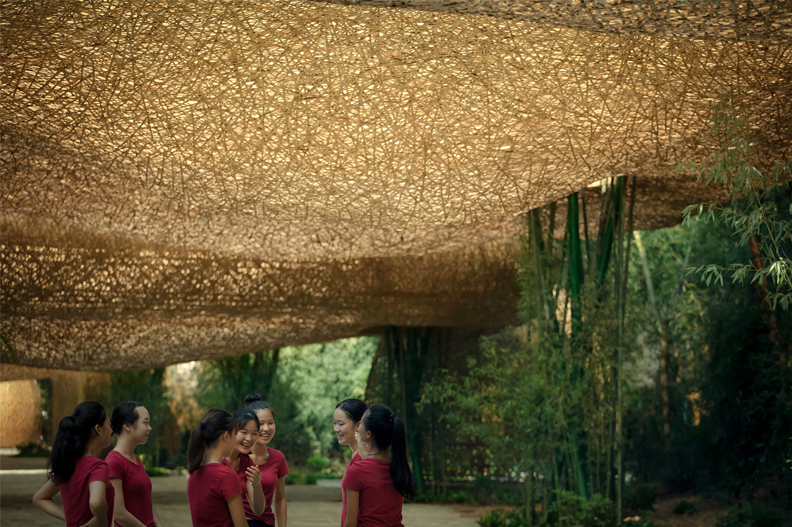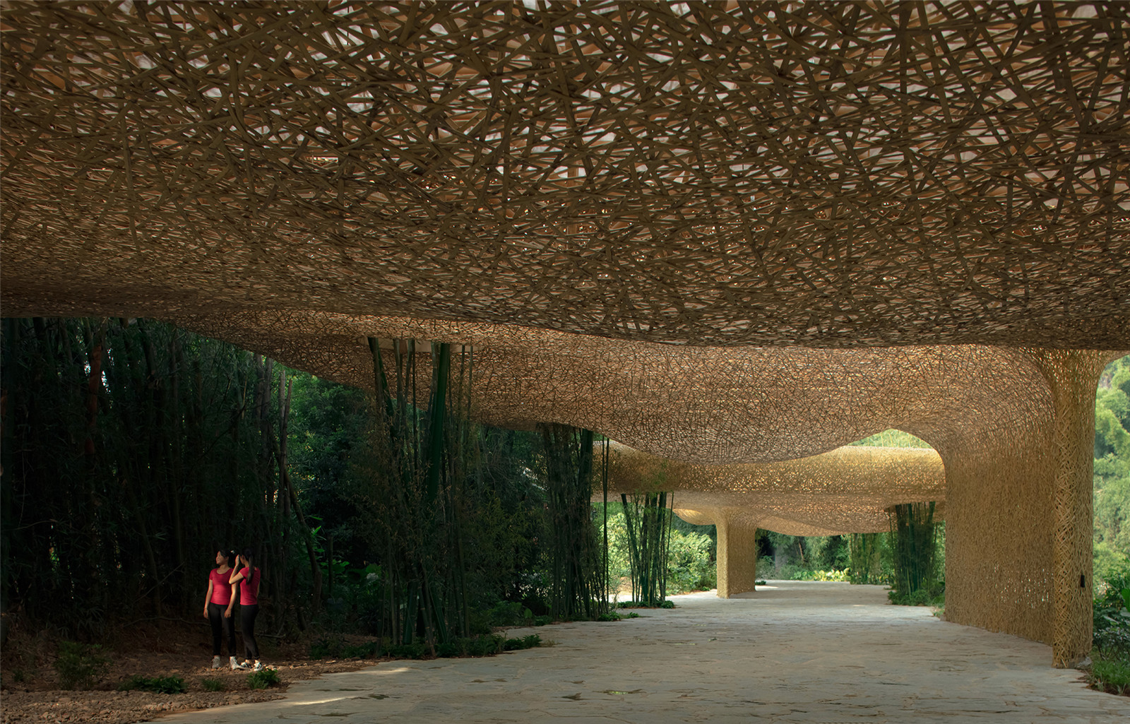 Integration of weaving culture, bamboo strip material and natural environment ?存在建筑