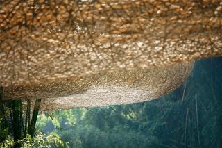 A stretch of woven canopy amongst clusters of bamboo ?存在建筑
