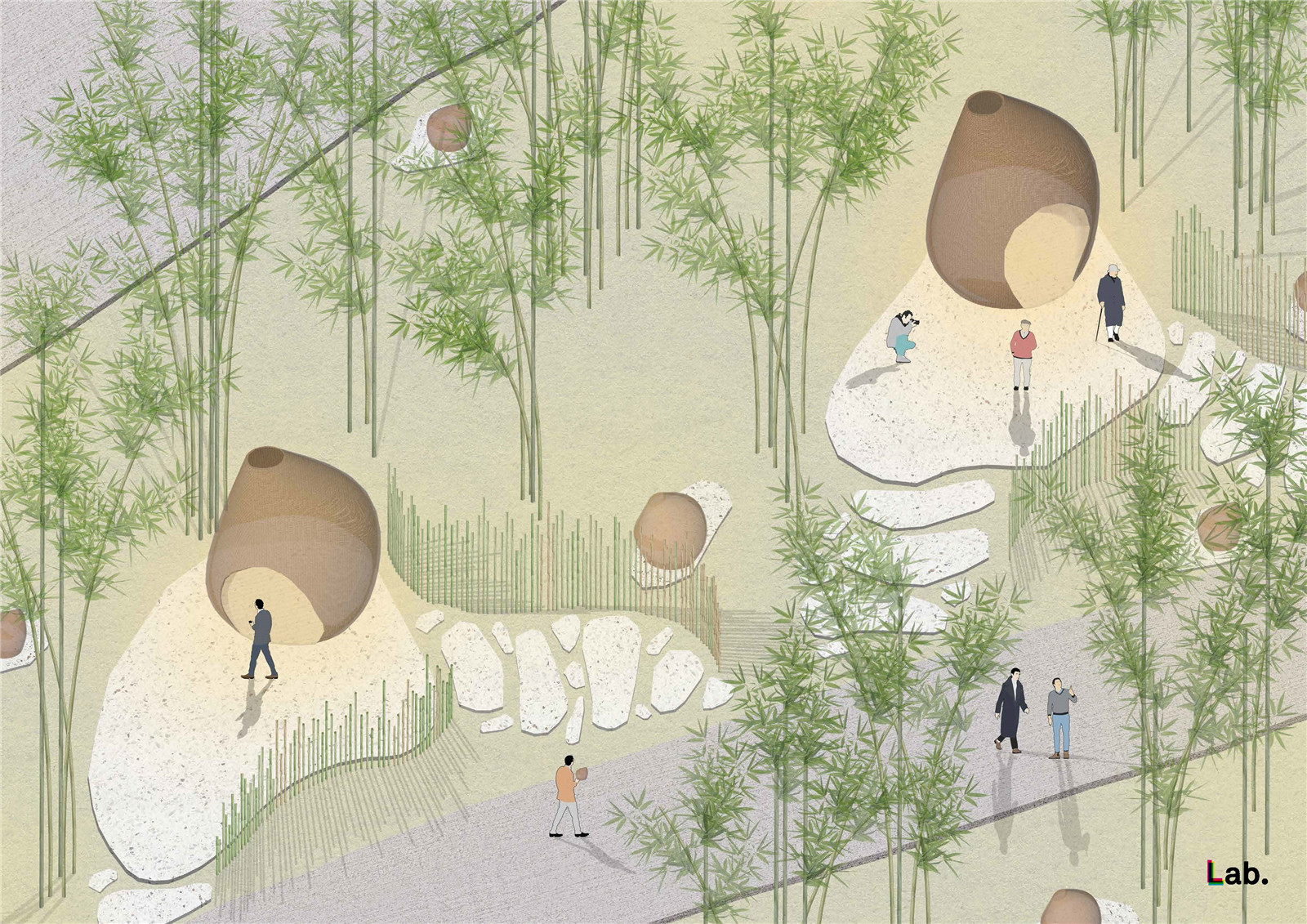 Bamboo lanterns from small to large leading people to the entrance ?llLab. 敘向建筑設(shè)計(jì)