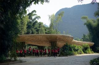 The Impression Sanjie Liu, Yangshuo, Guilin is located in one of the most dramatic landscapes in China. Endless greenery surrounds the site filling space between large karst towers of rock. With a landscape so grand any moves to dismiss it, let alone compete would make little sense. With this understanding it was decided that the natural elements themselves would form the premise for what architecture would inhabit the site, one element in particular, bamboo.