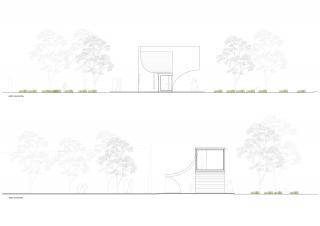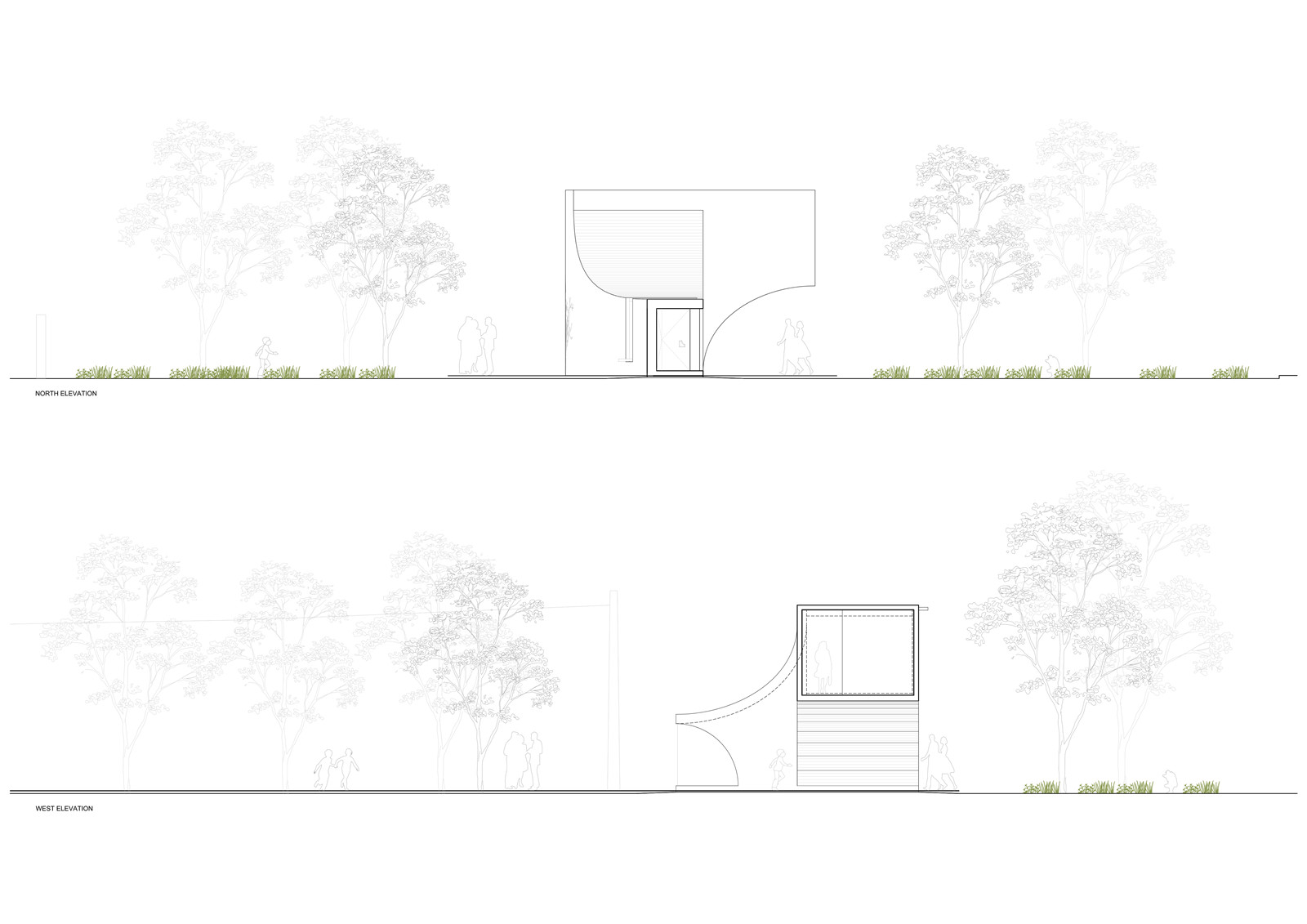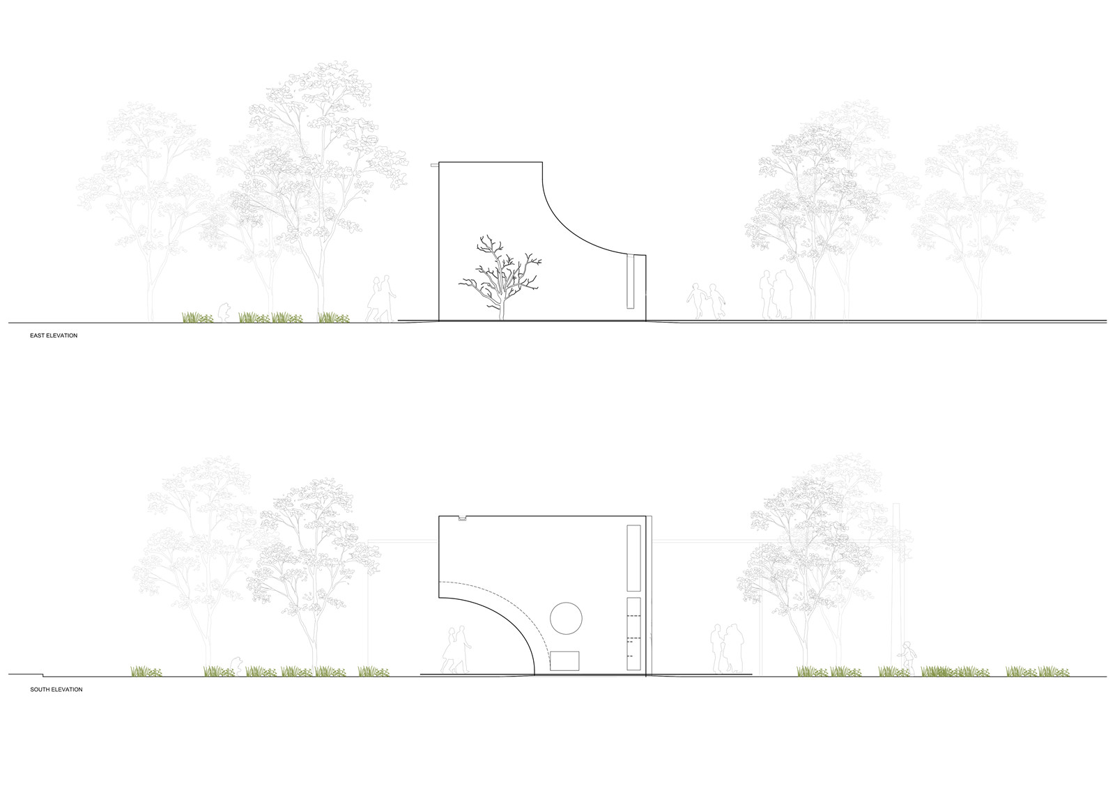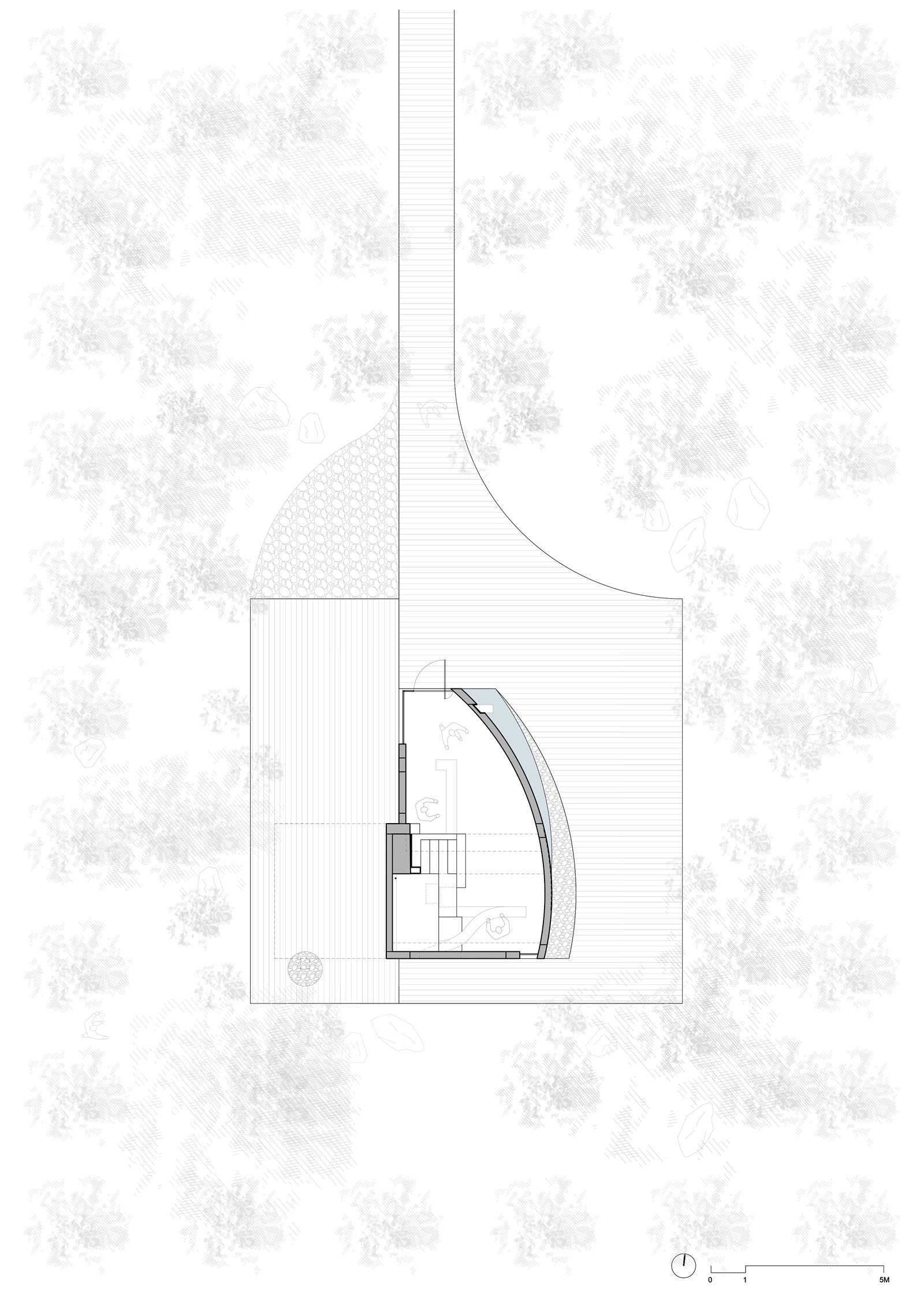 第一個(gè)落成的微建筑“桃屋”坐落于一片桃樹果林中,場地上桃樹呈“一邊倒”形態(tài),啟發(fā)了建筑形體創(chuàng)作,建筑師設(shè)想建筑是由一系列來自場地上的無形弧線所切割而成,形成躍升向天空的獨(dú)特形態(tài)。