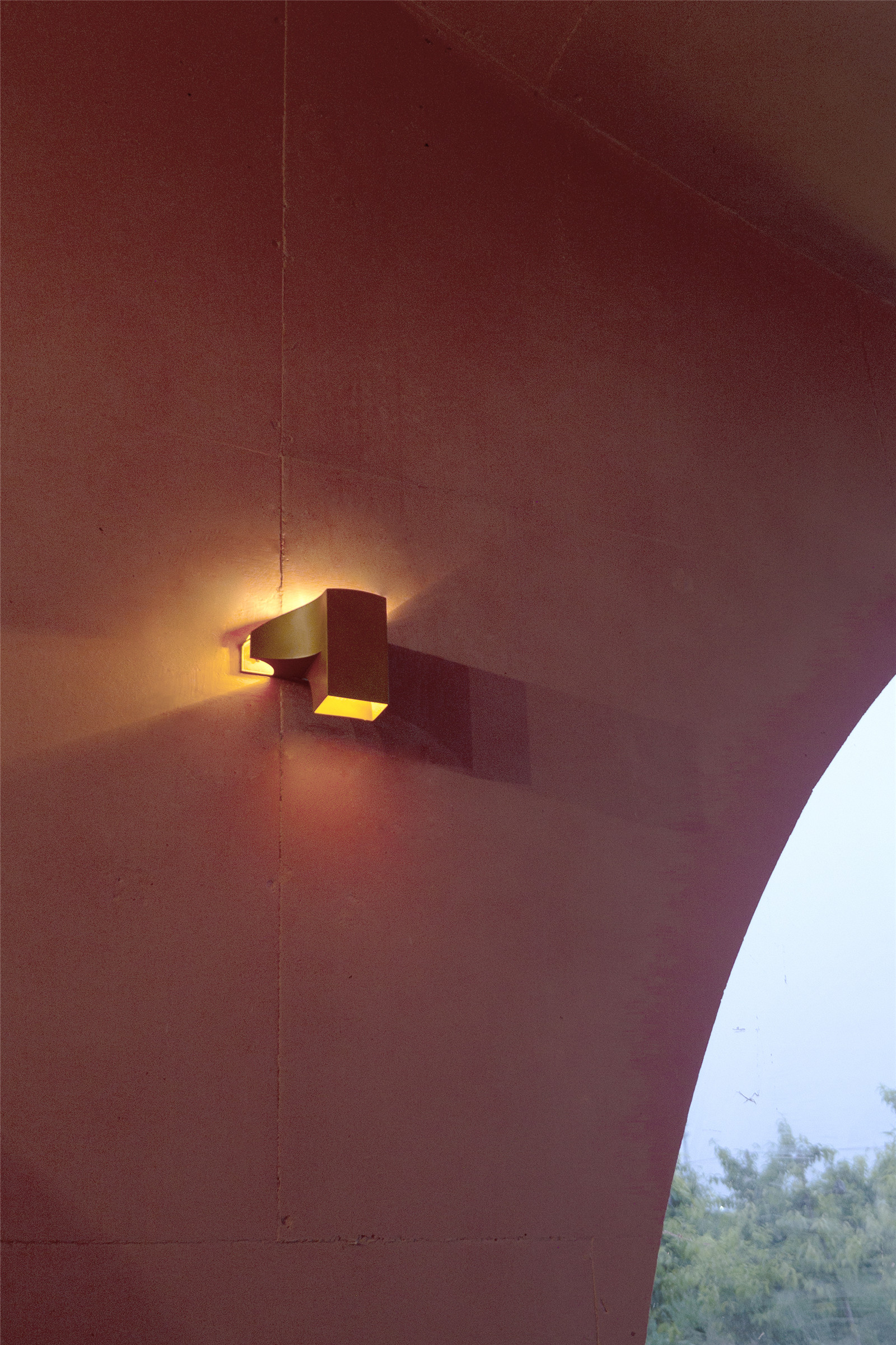 建筑師希望能在這個(gè)建筑中留下一些僅僅屬于這片土地的印記,因此在室內(nèi)用建筑體的輪廓設(shè)計(jì)制作了一個(gè)金屬壁燈與門把手;而在立面上用特制模板澆筑出一棵浮雕樹,向著東方日出的方位。