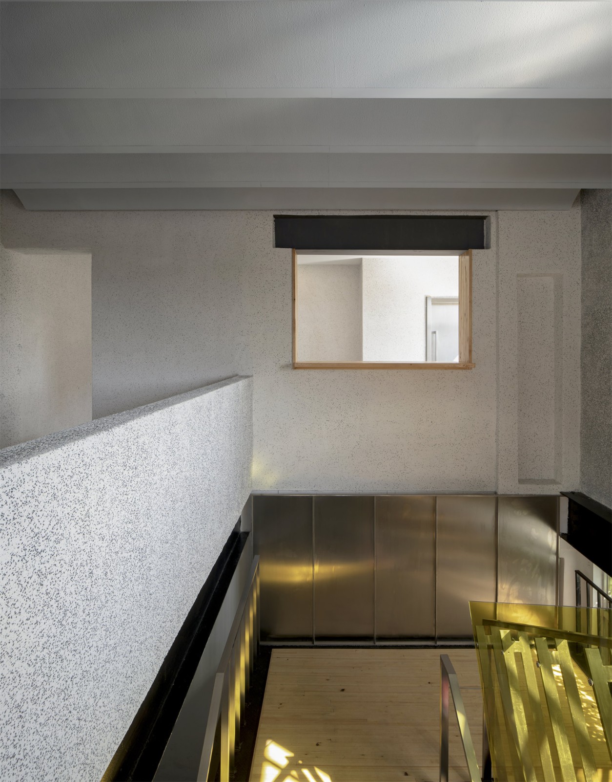 其三是以有色玻璃和不銹鋼扶手替換原有扶手。這一切都是為了能夠在新舊之間產生對話。