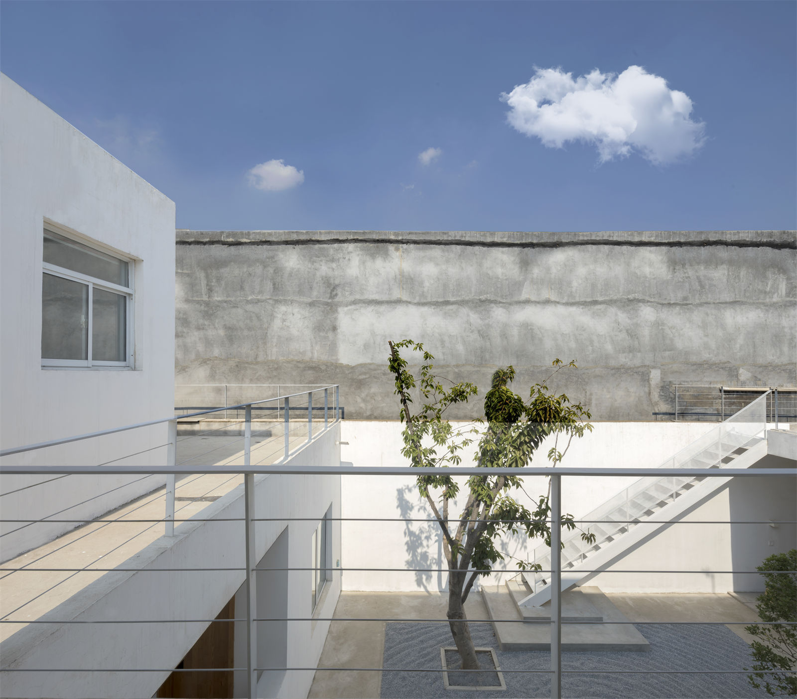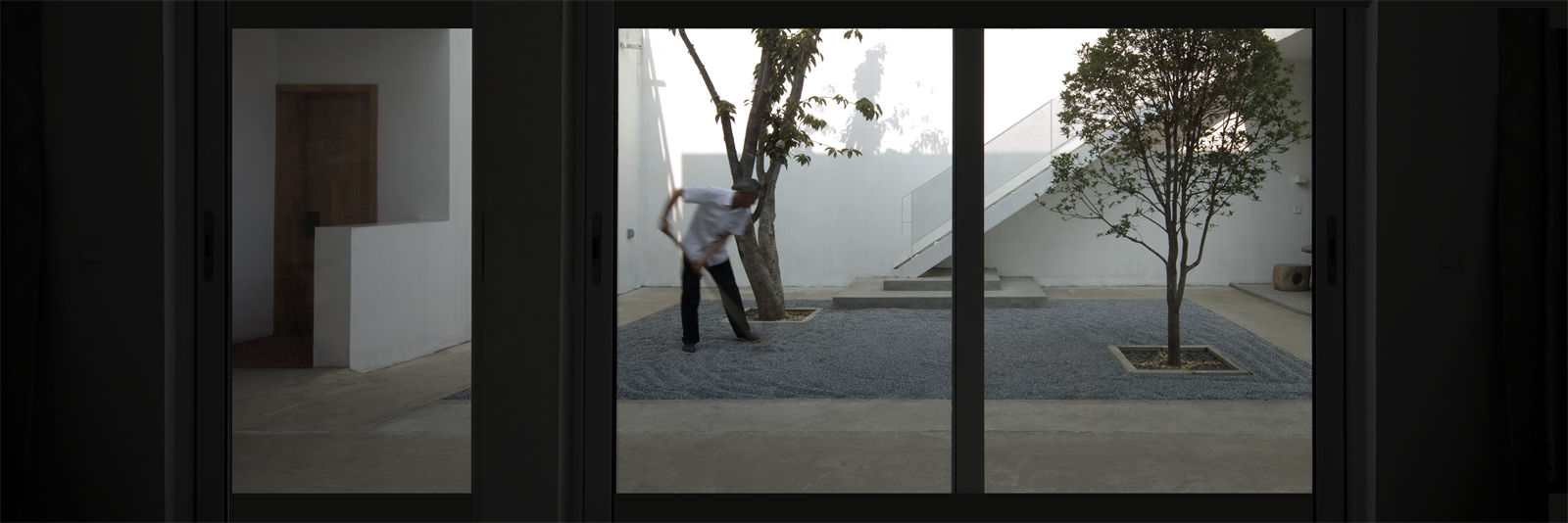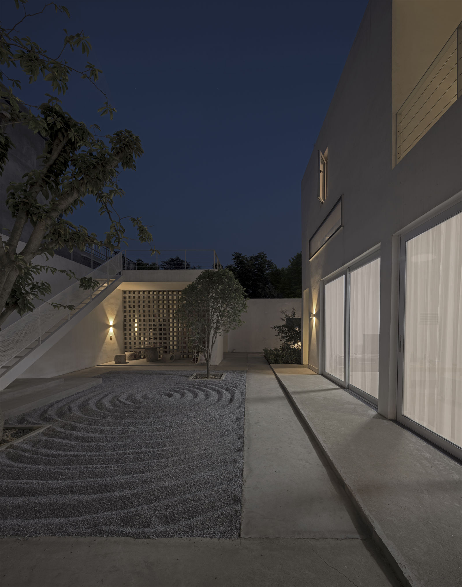 The logic of formal organization takes place around the boundary wall. The entrance is close to the neighboring of his uncle on the south side. After entering, it moves clockwise around the boundary wall, passing through pavilions, walkways, steel structures and a small courtyard. Then go to the west side, you can choose to go to the living room, or go to the second floor. When you enter the living room, you can see the main courtyard, where planted the magnolia tree.