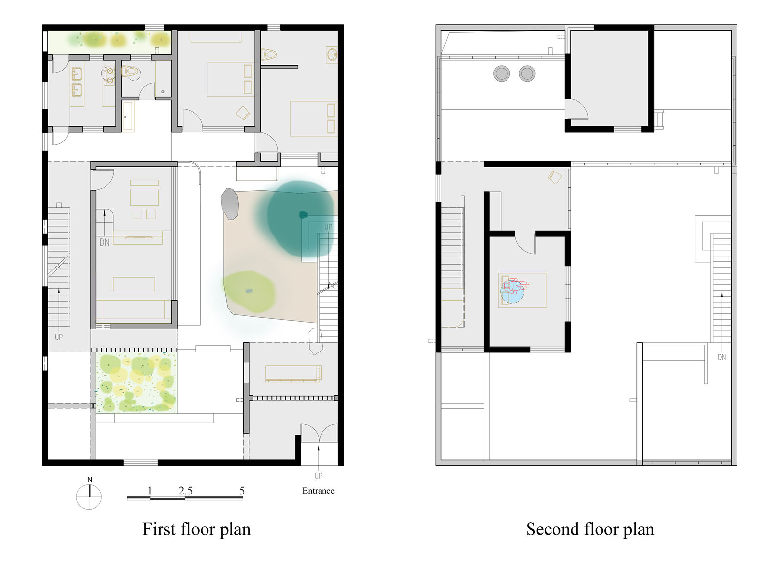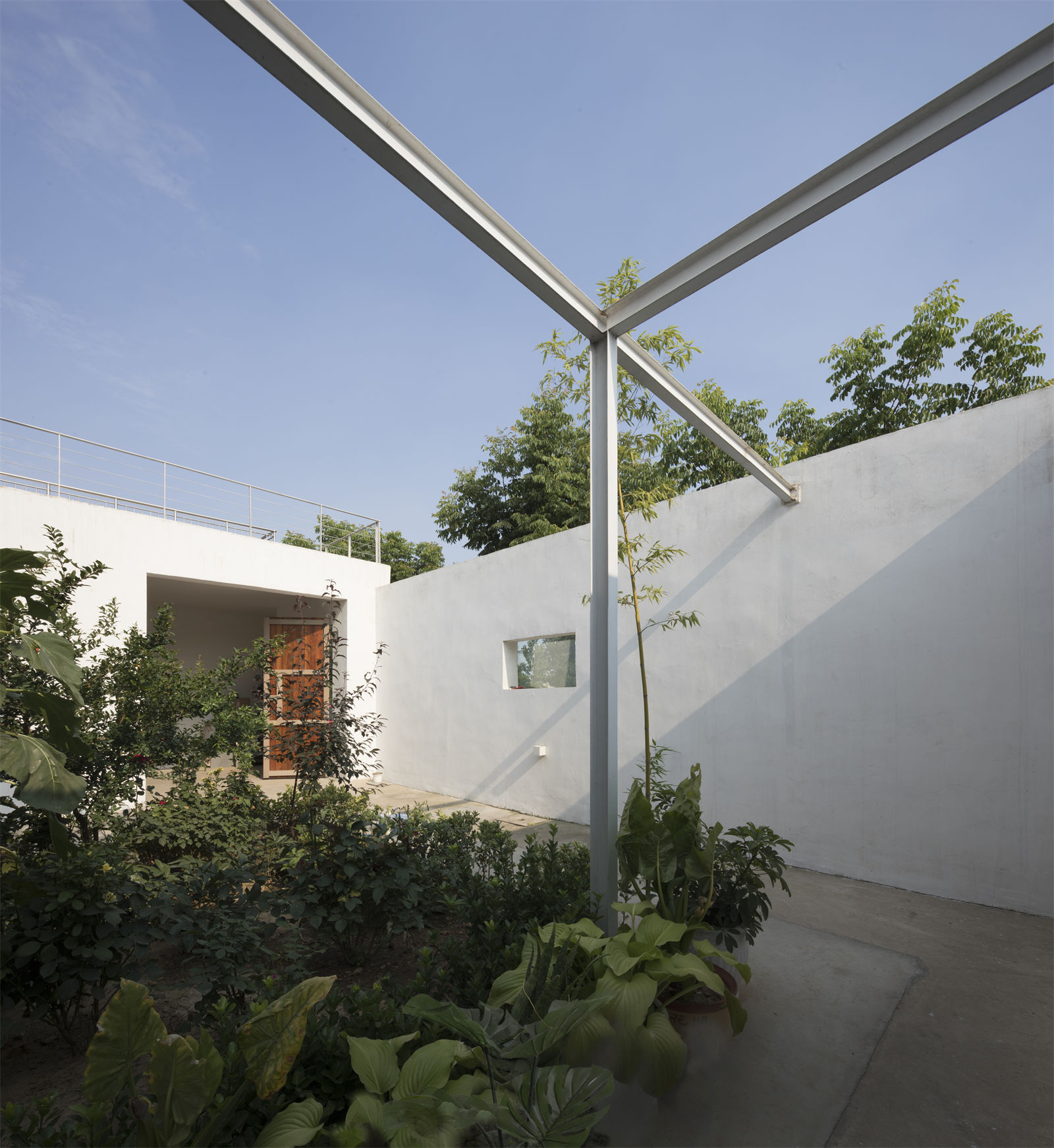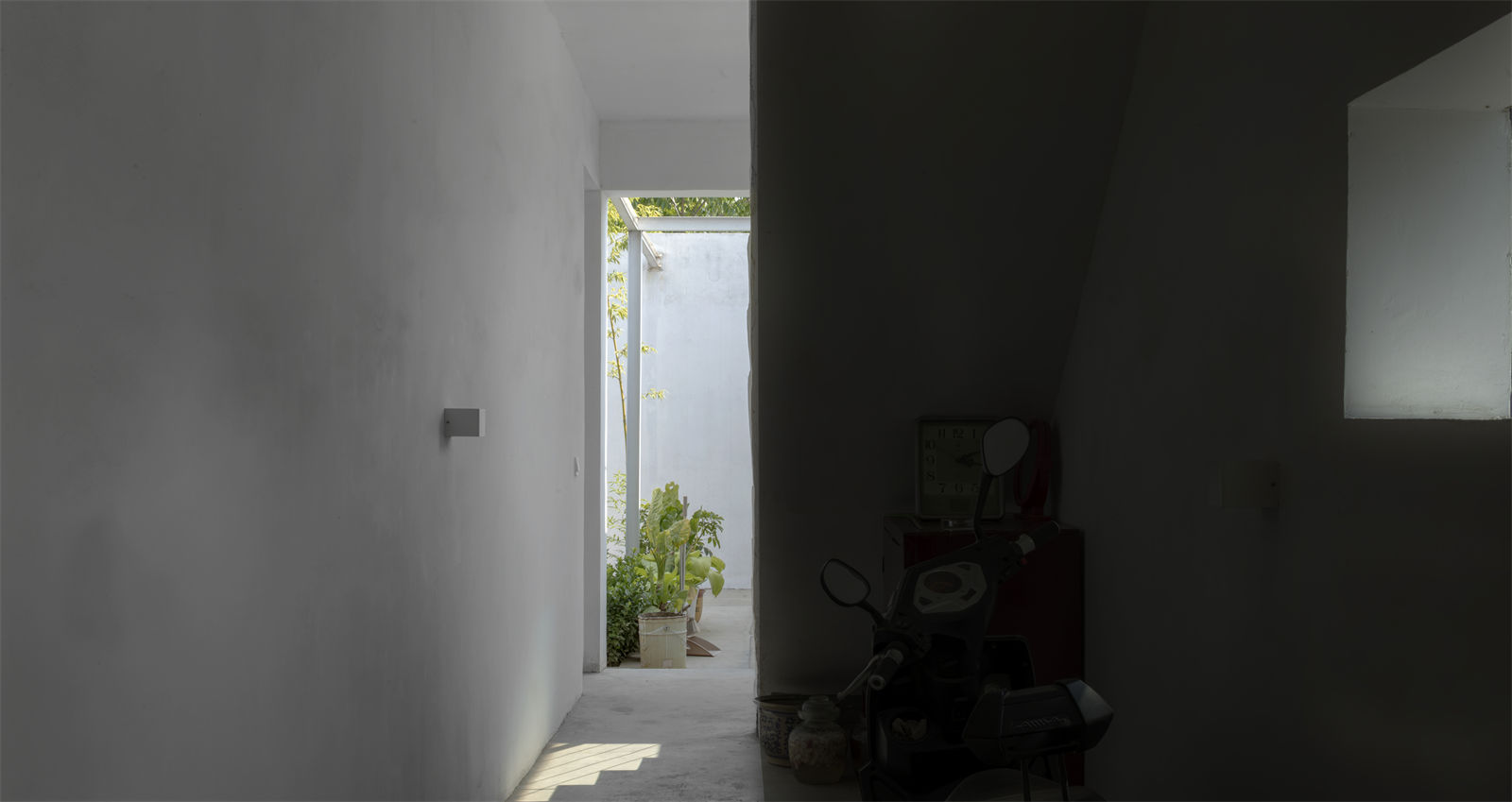The logic of formal organization takes place around the boundary wall. The entrance is close to the neighboring of his uncle on the south side. After entering, it moves clockwise around the boundary wall, passing through pavilions, walkways, steel structures and a small courtyard. Then go to the west side, you can choose to go to the living room, or go to the second floor. When you enter the living room, you can see the main courtyard, where planted the magnolia tree.