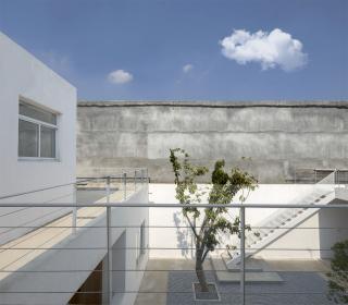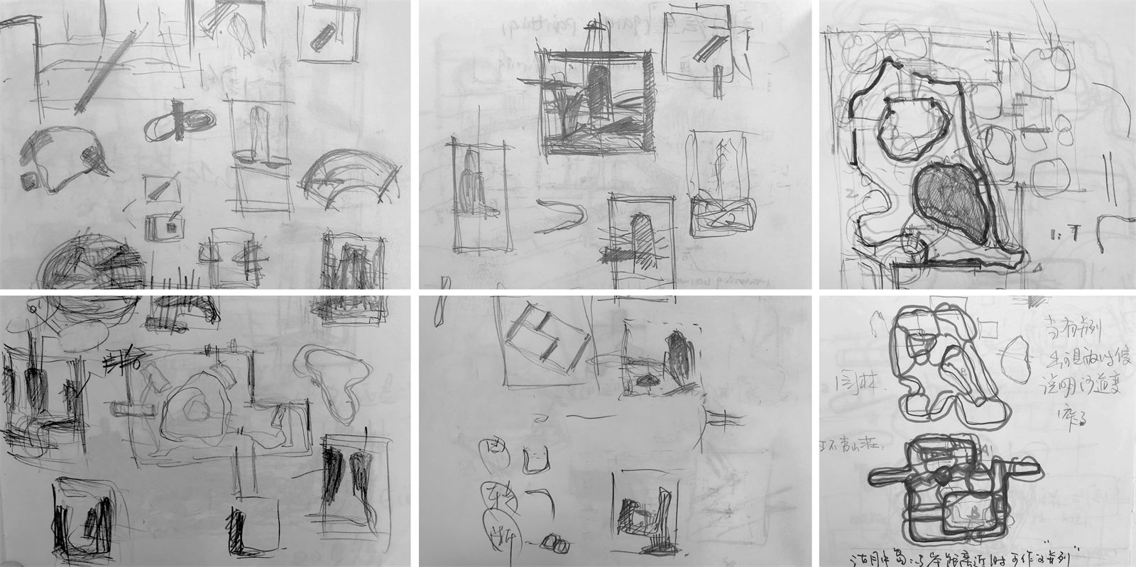 Considering typology, in the boundary space, there are nine spatial relationships between the body and the wall, analogous to the treatment of the boundary wall by traditional Chinese dwellings. The nine types here are: the types of paste and contain of the room and the boundary wall. The type of paste of the stairs and the wall, the paste of the platform and the wall, and the contain and interruption of the steel frame and the wall. Among them, the abstract relationship between the steel frame and the wall is rarely to be seen in the traditional Chinese houses. A similar space appears in the bridge on the north side of the Sa Liu Yuan Yang Guan in the Humble Administrator's Garden and in the corridor named You Yi Cun on the north side of the Lingering Garden, except that they are continuous and linear. The steel frame here emphasizes the transition in the space transition.