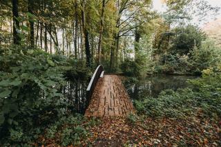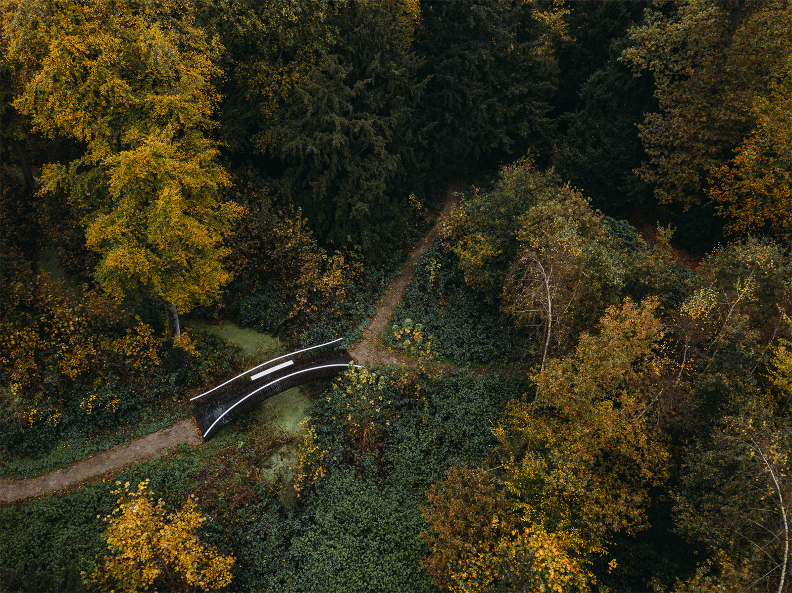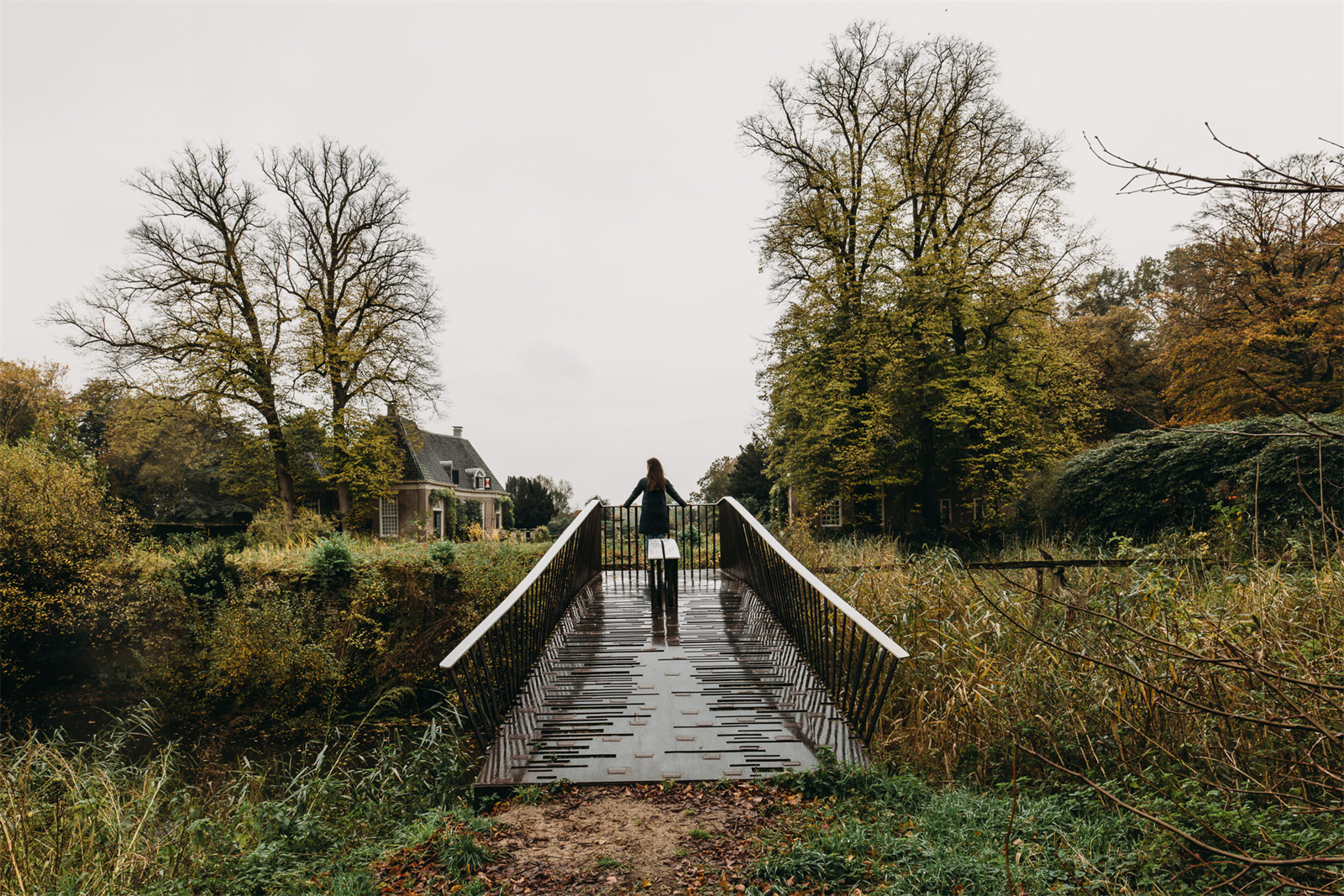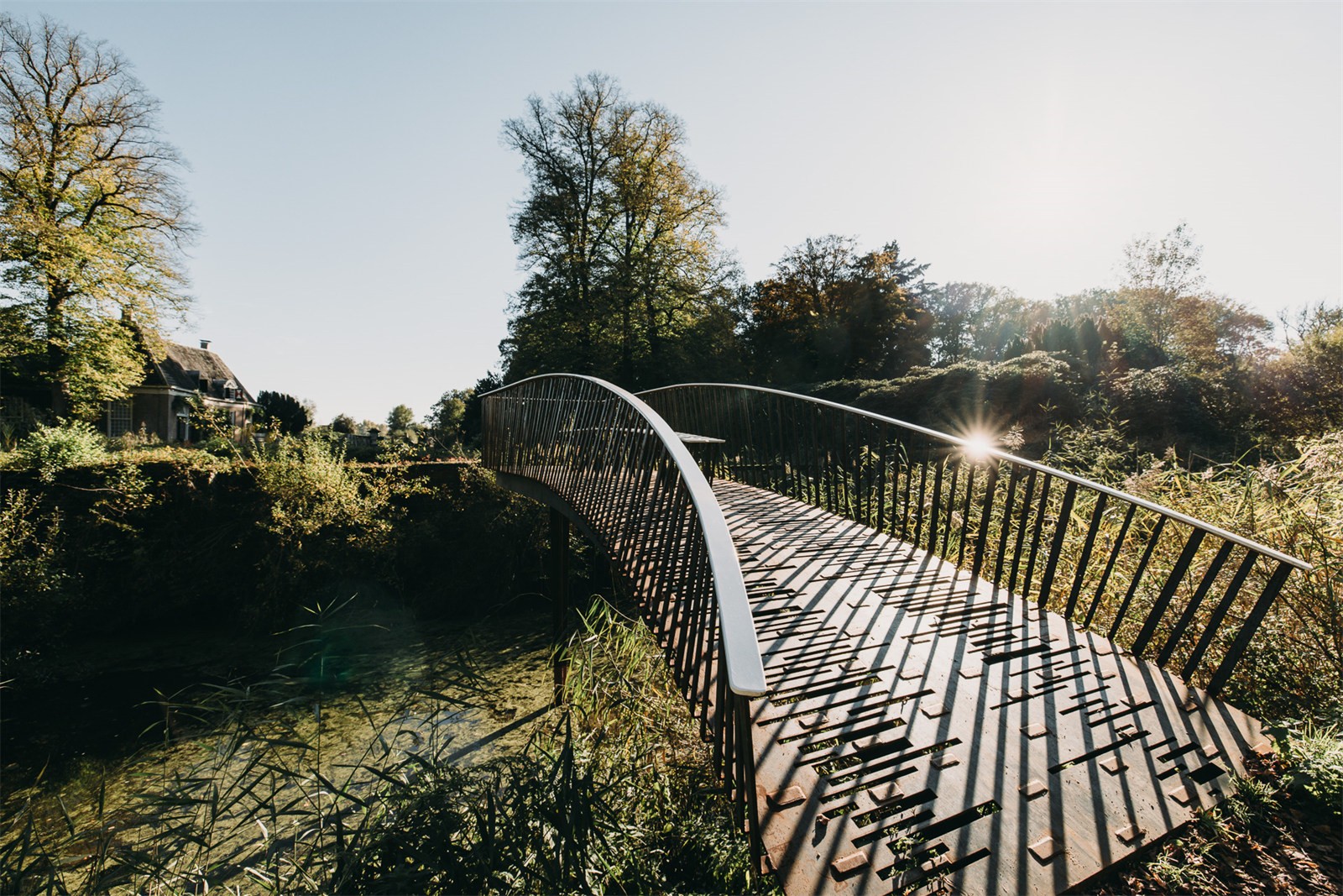 With the construction of the park bridges, an interesting layer of 'garden jewellery' has been added to the estate in the style of Husly's romantic park design. The eight new bridges are important landmarks on the walking route and are part of the landscape. By following the shape of the meandering path structure, the bridges accompany the carefully programmed walking route. The Ruin Bridge is an exception; this structure has been designed as a viewing platform above the moat, which offers a view of the remains of the historic mansion. It is a unique viewpoint where the different historical layers of the estate become clearly visible.
