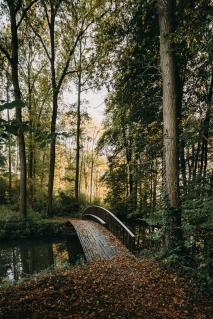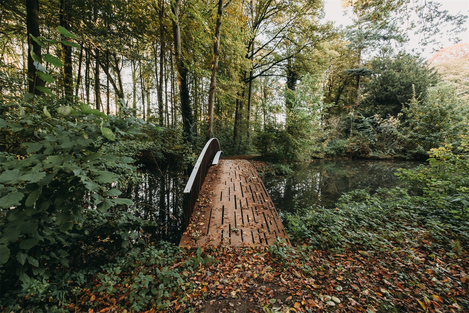The various bridges are in line with English landscape architecture in terms of style characteristics. In the eastern part of the estate, the English Bosch, traces of the rich history have largely been lost. Two arched bridges have been realized for this part of the estate that offer a view of the water, lifting the passenger above the landscape. The bridges connect to the path structure with a smooth transition of the deck and railings. Landscape and bridge flow into each other. In the northern part of the estate, the paths are narrower. The bridges that are located here are designed as a gangway over the water with a single railing.