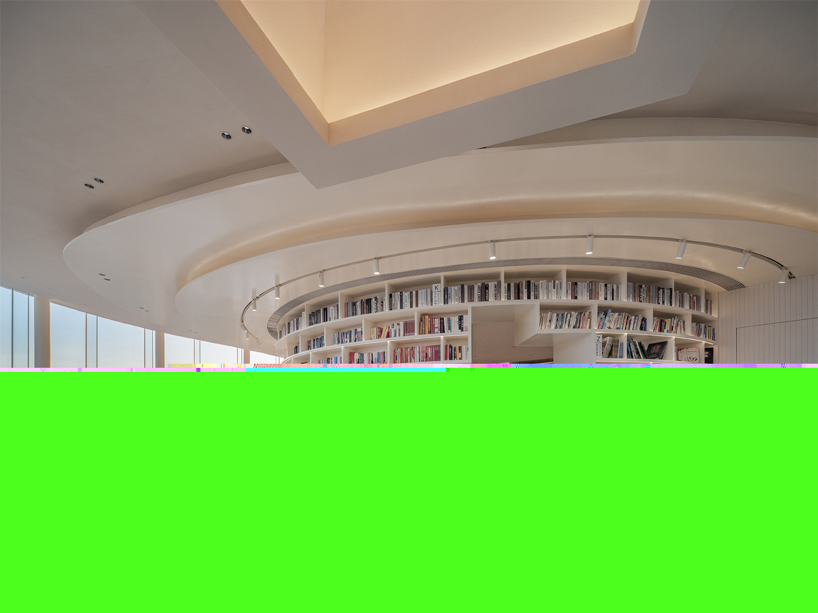 The indoor tone of the reading area is mainly white, light gray and other bright colors, and the curve shape is used to create a relaxing and fashionable atmosphere. Seats and small tables are placed along the outer glass curtain wall, where readers can read quietly and overlook the scenery. The bookshelves are arranged in a ring along the inner wall and extend outward in the ceiling and ground areas to form a cloud like shape. The part extending to the ground also becomes a free reading area, where some readers who do not want to sit upright can enjoy the afternoon time with books here, leaning or lolling.