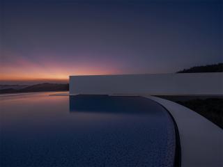 在山頂,白色的走廊和長墻成為自然景觀中的人工物,純粹的幾何形體很好的吸引了使用者的注意力,并將人引向屋頂水池和大海的方向。
