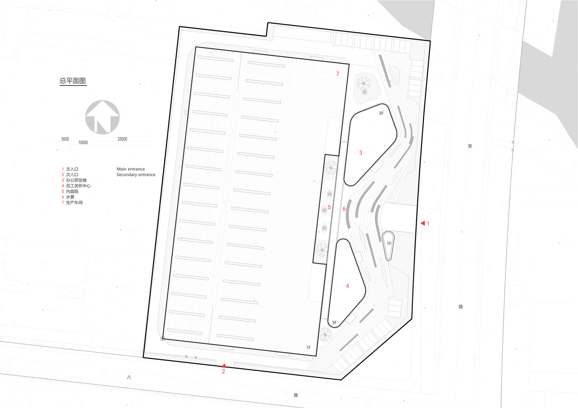 對于處于激烈競爭狀態(tài)下的初創(chuàng)企業(yè)而言,首要的任務(wù)是生存。如何在有限的資金和資源前提下,實現(xiàn)企業(yè)良好的開端,并且達(dá)成最大的實用價值,是最優(yōu)先項的問題,與此同時,在建筑和空間設(shè)計上也要求充分反映企業(yè)特色和精神,傳達(dá)對于未來的信心。企業(yè)初始拿到的地塊并不大,只夠容納一個基本的標(biāo)準(zhǔn)生產(chǎn)車間和大約3000平方米的辦公用房。傳統(tǒng)高效的做法是將車間和辦公用房合為一體,在車間中劃分一部分面積作為辦公使用,但是對于航亞科技這類主要面向國外客戶,對于產(chǎn)品中品牌價值特別重視的科技企業(yè),一個良好的企業(yè)形象,不僅可以反映企業(yè)獨特愿景,而且在與客戶的交往過程中也能夠傳遞出一種有別于普通加工企業(yè)的品牌形象。