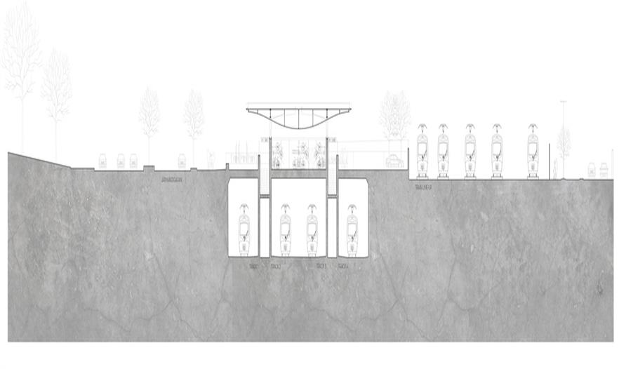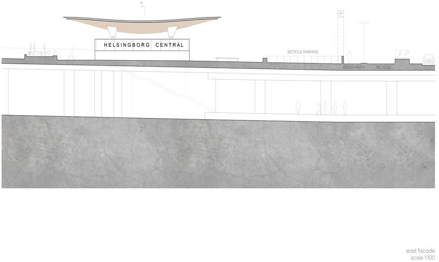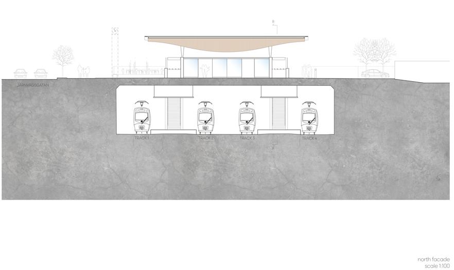 為進(jìn)一步解決城市經(jīng)歷的問題,入口會按照我們所希望的成為城市地標(biāo)?!拔覀兘ㄖ蠈τ谑占蓓?shù)闹饕敕ɑ跔I造一個上下之間序列的概念。屋頂含有一個中正的方形設(shè)計(jì),每一個剖面都經(jīng)過了精雕細(xì)琢。結(jié)合了隆起底面和在軌道方向上的曲面屋頂營造了一種關(guān)乎運(yùn)動與柔軟波動的城市公園類型的關(guān)聯(lián)。”Patrik Ekenhill說。