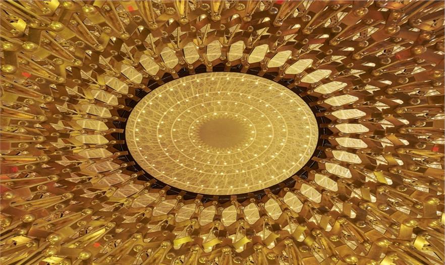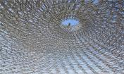 蜂巢概念主要體現(xiàn)在蜂巢中心的球形空隙,它允許人們走近內(nèi)部并體驗(yàn)蜜蜂一天的生活活動(dòng)。位于幾英里遠(yuǎn)的諾丁漢的真正蜂巢中,一個(gè)加速計(jì)捕捉著蜜蜂的活動(dòng),并通過潛入鋁節(jié)點(diǎn)部件的LED燈具通過發(fā)光和脈動(dòng)來表達(dá)。
