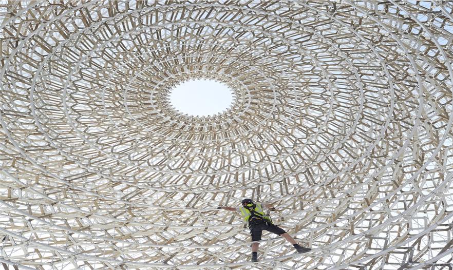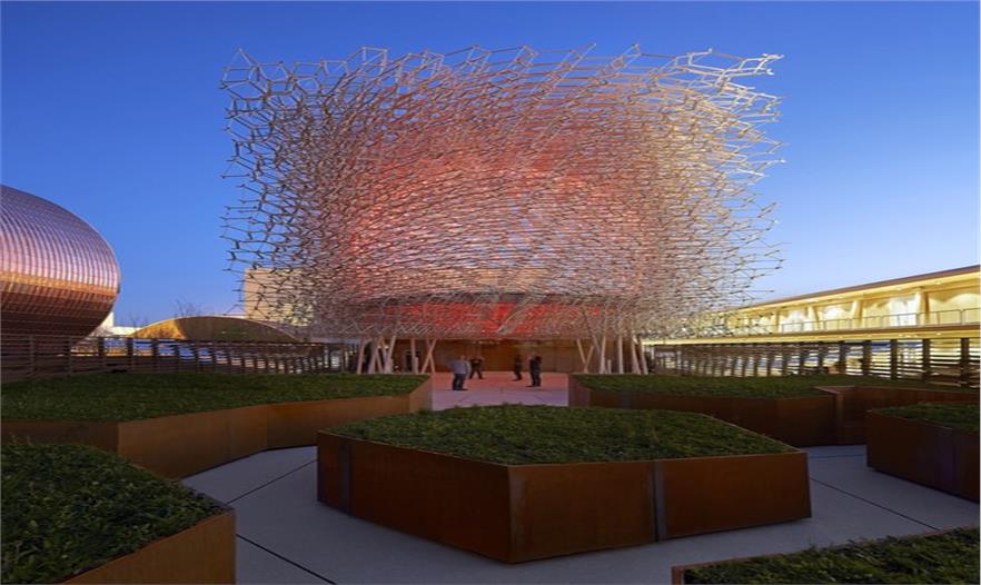英國貿(mào)易投資總署(UKTI)選擇了屢獲殊榮的英國人才參與到設(shè)計(jì)和建設(shè)2015年米蘭世博會5月1日開幕式的展館設(shè)計(jì)中。它的概念圍繞著蜂巢以及新的研究和技術(shù)如何幫助解決糧食安全和生物多樣性問題。