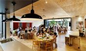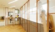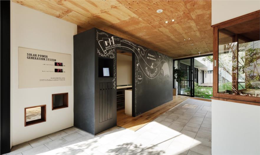 學(xué)校內(nèi)的公共區(qū)域很開闊,折疊式的墻壁讓老師能夠在晴朗的天氣期間建造出室內(nèi)外空間,讓孩子們在吃飯和上課期間都能享受到到新鮮的空氣和陽光,而不是只是玩樂期間。一個開放體育館設(shè)有精巧的地板,為團體活動營造出更多的空間,特色是大型窗戶,讓房間溢滿陽光。