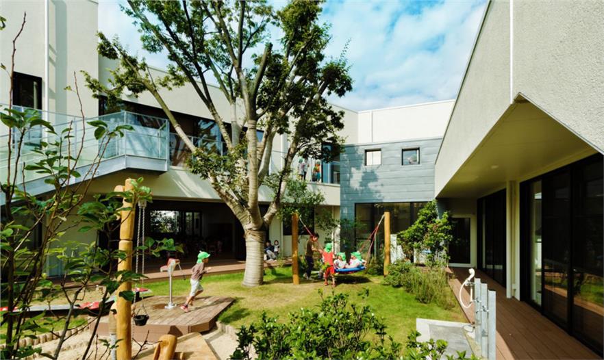 日本幼兒園以其極簡化設(shè)計和創(chuàng)意性游樂空間而聞名。日本Hibino Sekkei+Youji no Shiro事務(wù)所創(chuàng)造出許多受人喜愛的設(shè)計,他們的最新設(shè)計(大阪KM幼兒園)融合了之前幼兒園的所有標(biāo)志性元素,又加入了一些獨特的元素。由于廣闊的室內(nèi)空間和有趣、受保護(hù)的游樂場,KM幼兒園將兒童保育和早期教育提升成了一種藝術(shù)。