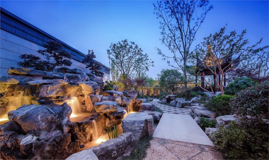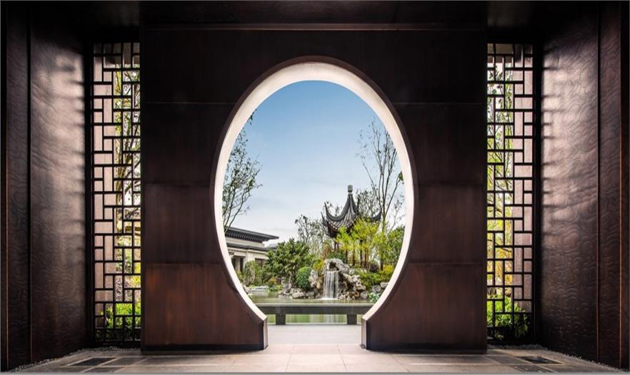 該案以蘇州園林為藍本,結(jié)合現(xiàn)代的造園工藝,運用框景、對景、漏景、夾景、透景、障景等設(shè)計手法,力筑一方具有文人情懷與氣息的園林。