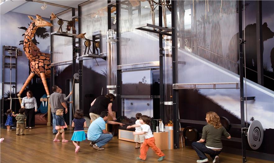 該團隊挑戰(zhàn)了兒童博物館的傳統(tǒng)設(shè)計理念,發(fā)展了一個展覽設(shè)計,清晰明確而不是混亂不堪,應(yīng)用了各種顏色和天然材料,以垂直尺度層次呈現(xiàn)。Olson Kundig事務(wù)所放棄了文本,采用完全互動的展覽,加入了各個年齡段的講師。