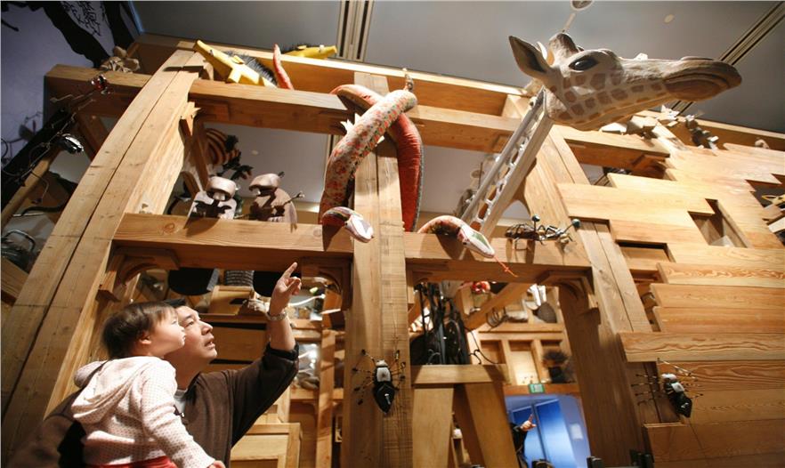 展覽中大概15對的動物是會動的——游客和員工會玩玩偶,活躍氣氛。這個方舟的設(shè)計采用了該事務(wù)所在住宅建筑中使用的相同理論——使用天然材料,布局簡單,體現(xiàn)出骨骼結(jié)構(gòu),突破界限從視覺角度延伸空間。