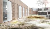 這個占地2萬平方米的設(shè)施既是南丹麥大區(qū)員工工作的地方,也是護(hù)理病人的地方。該建筑的位置和與Aabenraa醫(yī)院原有的身體研究部確保滿足該區(qū)域的協(xié)同合作需求。該設(shè)計簡介需要新的精神科設(shè)施確定自己的形象,同時包括精神病院和身體研究醫(yī)院使用的共同空間。