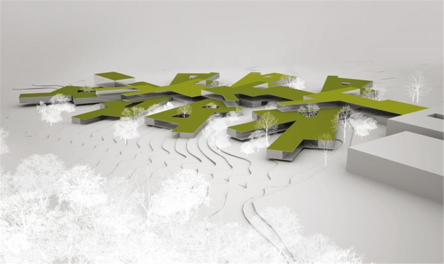 每個診療區(qū)能觀賞到周圍漂亮的綠景,同時建筑之間的戶外空間設(shè)計成繁茂的庭院和活動空間,用于外部治療。這些建筑部分在功能上和視覺上都是相連的,緊密聯(lián)系起來,與山地融合在一起。