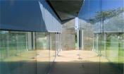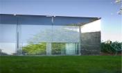 擴(kuò)建部分將不同材質(zhì)的平面相連:玻璃、石頭、草坪。玻璃反射了周圍的景觀,屋頂花園上的草坪,石材圍和了高程的邊界。為了將設(shè)計(jì)的成分最小化,建筑師使用了普通的10 毫米鋼板來(lái)連接這三個(gè)不同的平面。在主空間內(nèi),混凝土屋頂?shù)那€被設(shè)計(jì)成與坡度等高線同樣的走向。
