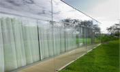 主要的外立面由雙層玻璃墻組成,外側(cè)為 10mm 厚的鋼化玻璃,內(nèi)側(cè)為標(biāo)準(zhǔn)玻璃幕墻,兩者之間設(shè)有一個(gè)卷簾。兩側(cè)的玻璃幕墻均可以開(kāi)啟以保證室內(nèi)的通風(fēng)。由于雙層幕墻和半地下的建筑設(shè)計(jì),即使住宅暴露在法國(guó)南部炎熱的夏季環(huán)境里,房間內(nèi)的舒適度依然很好。