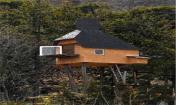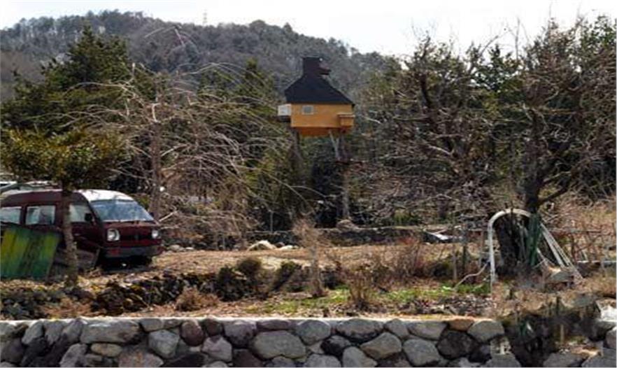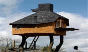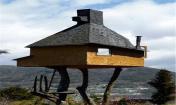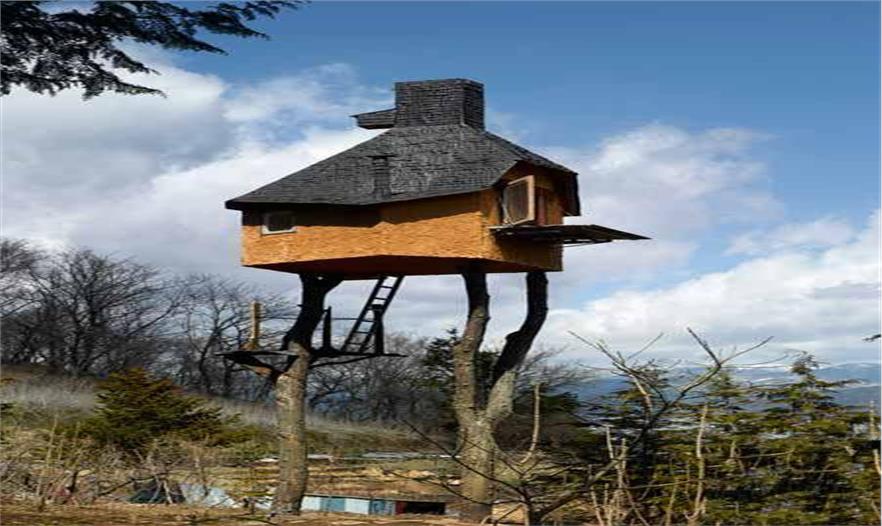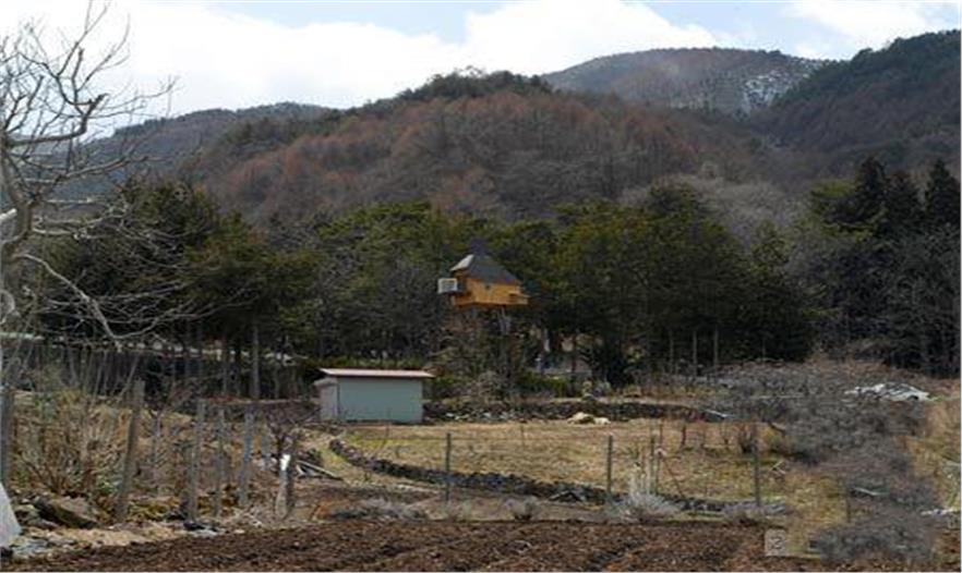 茶室是建立在板栗樹(shù)干上,從附近的山上砍伐,運(yùn)送到現(xiàn)場(chǎng)。只能通過(guò)一個(gè)獨(dú)立的梯子到達(dá)。傳統(tǒng)上的茶藝大師建立自己的茶室,F(xiàn)ujimori設(shè)計(jì)了自己獨(dú)自使用的茶室。室內(nèi)使用石膏和竹席。茶室名字的意思是“高處的茶室”。Terunobu Fujimori是學(xué)者也是建筑師,他認(rèn)為,此茶室是“絕對(duì)個(gè)性的設(shè)計(jì)”。茶室極其緊湊,只有4個(gè)席子的面積(2.7平方米)。地板只有2個(gè)席子的面積(1.8平方米)。如此小的空間似乎是一個(gè)人身體的延續(xù),好像一件衣服。
