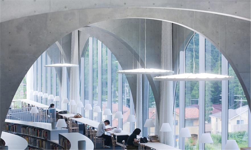 Tama Art University Library 讓每個人在他與書和影視媒體打交道過程中發(fā)現(xiàn)自己的風(fēng)格,如同走進一座樹林或一個山洞,在穿梭中柔和的相互關(guān)系在這個拱廊樣子的空間中形成,創(chuàng)造力從此散發(fā)到真?zhèn)€校園。
