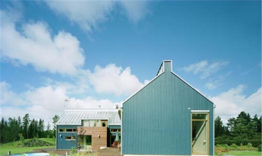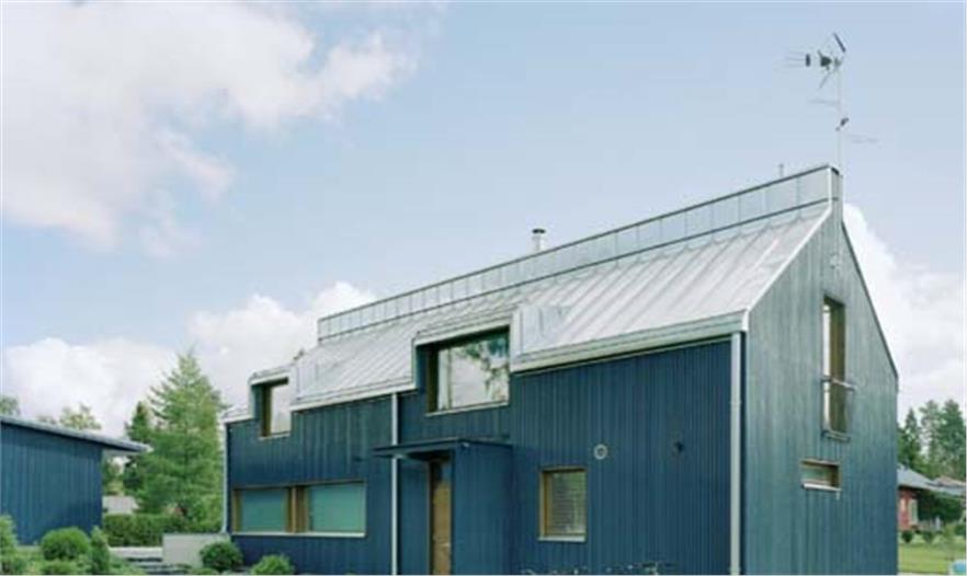 住宅由地?zé)峁┡?。房屋的建造使用了淺藍(lán)莓色的木材,屋頂使用了鋅皮材料建成。在建造過(guò)程中,人們非常注意材料的選擇和表面處理,這是一個(gè)“健康的住宅”。房屋內(nèi)部的主要材料是云杉木,它們被設(shè)計(jì)成了不同的形狀,對(duì)房屋進(jìn)行裝飾。
