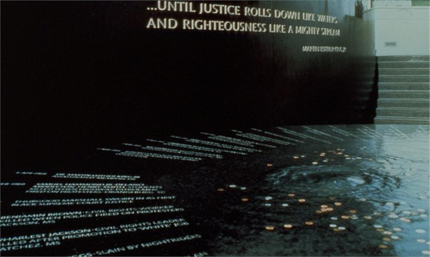民權(quán)紀(jì)念碑是一個(gè)光滑的石桌,上面刻著在民權(quán)運(yùn)動(dòng)期間犧牲的烈士的名字。它向人們講述著一個(gè)簡(jiǎn)短的歷史,訴說(shuō)一個(gè)人的死如何換得更好法律條文的誕生。它描繪一場(chǎng)人民的運(yùn)動(dòng),而不僅僅是幾個(gè)名人的活動(dòng),它向游人展示個(gè)體是如何幫助改變歷史的。