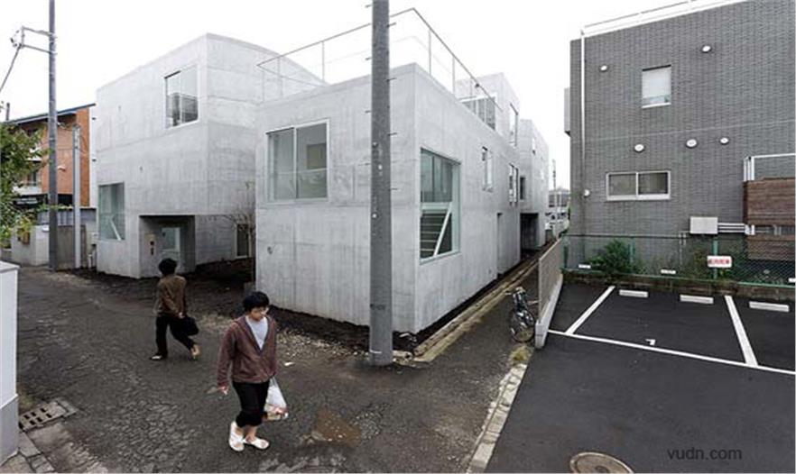 Okurayama Apartments建于2008年,和妹島做的一些其他的集群建筑一樣,都是主要在探討建筑和室外空間的關(guān)系問題。這種室內(nèi)外的空間關(guān)系存在于東方的傳統(tǒng)文化之中,一種通透,融合,不分內(nèi)外的交融關(guān)系。妹島曾經(jīng)說:“我覺得我想找到某種不用透明材料的透明性,不是物理上的透明,而是通過平面組織的方法。”——這個(gè)方法應(yīng)該是將室外的空間納入到這個(gè)建筑的平面設(shè)計(jì)中,成為一個(gè)整體,建筑的內(nèi)部和外部在平面上彼此穿透,從而達(dá)到透明。
