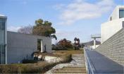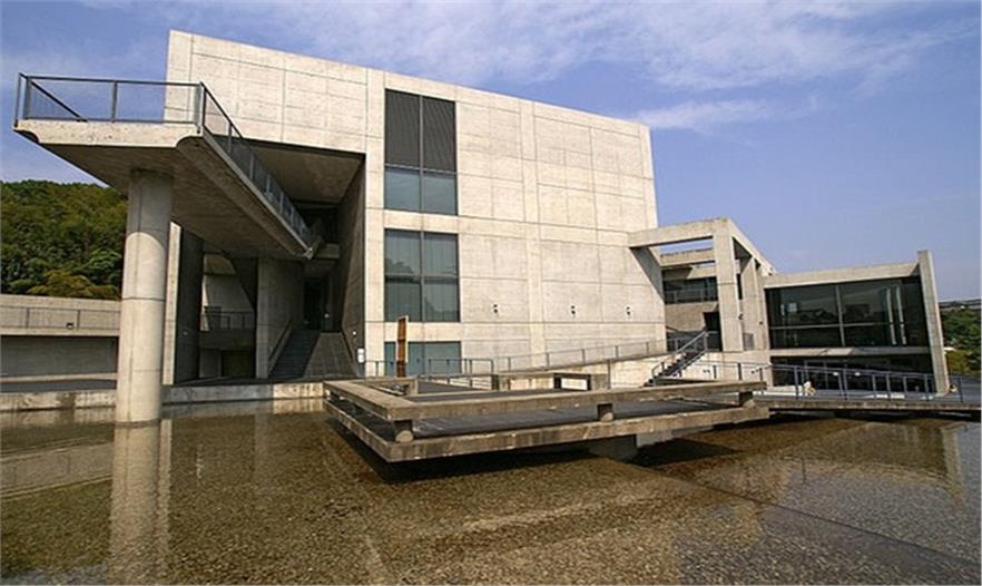 沿著梯田般的水池上坡前往本館,坡道的盡頭可以見到一處由樓梯間延伸而出的天橋瞭望臺,這種天橋瞭望臺是安藤忠雄善用的建筑手法,讓參觀者可以在旅程的盡頭,可以回頭眺望來時路。這種以坡道引導參觀者進入建筑空間的作法,源自于柯比意所設計的薩維爾別墅,而自稱是柯比意最正牌傳人的美國建筑師理查德‧邁爾(Richard Meier)也喜歡在他所設計的建筑中,特意建造超長坡道,好讓人在坡道行走過程中,可以從不同角度欣賞他所設計的建筑,這個設計好的過程被稱作是「建筑散步」。「建筑散步」雖然是建筑師處心積慮的自戀設計,卻也成為一種思索人生的哲學性路徑。