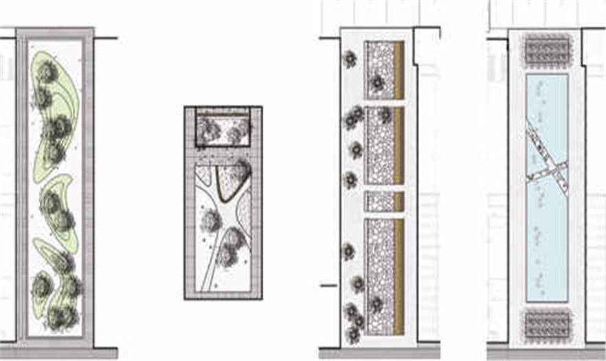 建筑物之間有七個花園,每一個都具有自己的個性和布局。操場也位于建筑間的條帶上,可以用來舉行活動和演講,因為清晰的分區(qū)的策略,使得場地得以充分利用,沒有任何浪費。