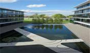 Karres and Brands與Meyer 、 Van Schooten一起制定了該城市發(fā)展規(guī)劃,規(guī)劃的基本原則是功能組織清晰合理,自然的外觀和清晰的導向,在整體設計中,水作為護城河的歷史性防御方法被重新引入,在辦公區(qū)的建筑周圍設計環(huán)繞的溝渠,以此與附近的Kromme Rijn river 創(chuàng)建了關系。