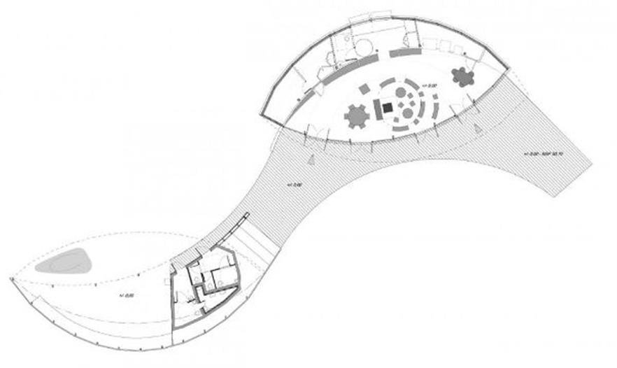 基地 Gorges de Franchard基地是法國楓丹白露森林地區(qū)最受歡迎的區(qū)域(法國最大的列管區(qū)域)。這是新“生物圈”自然保護區(qū)中一個極其敏感的高品質基地,受到歐洲“PROGRESS”項目的支持。順序 本案項目也是法國大區(qū)最早的生態(tài)旅游中心,設計目標是管理該區(qū)域的交通流線,最大限度提高公眾保護自然的意識。該項目圍繞接待處和展覽區(qū)組織布局,有一個大廳用于歡迎游客團體和進行教學活動。建筑項目:本案項目的設計基于對建筑周圍環(huán)境及建筑與景觀的聯(lián)系所做的分析。