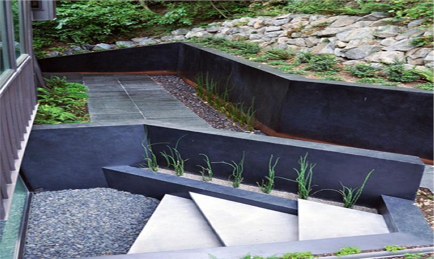事務(wù)所對房子周邊的環(huán)境進行了改造,增添了巨石墻,還有樓梯、木甲板及碎石人行道。設(shè)計中使用傳統(tǒng)的材料,僅需最低限度的維護,就可以延續(xù)幾十年,設(shè)計團隊整合房子周邊現(xiàn)有植被等轉(zhuǎn)化為適于居住空間的景觀元素,相互連接在房子的外圍。通過創(chuàng)建墻壁和人行道形成一系列線形景觀將視線推拉到山坡上。整體設(shè)計形成一個個獨立又相互聯(lián)系的空間,花園中的碎石、石墻、植被將房子的邊緣巧妙地過渡到森林中去,成為一個有凝聚力的整體。