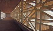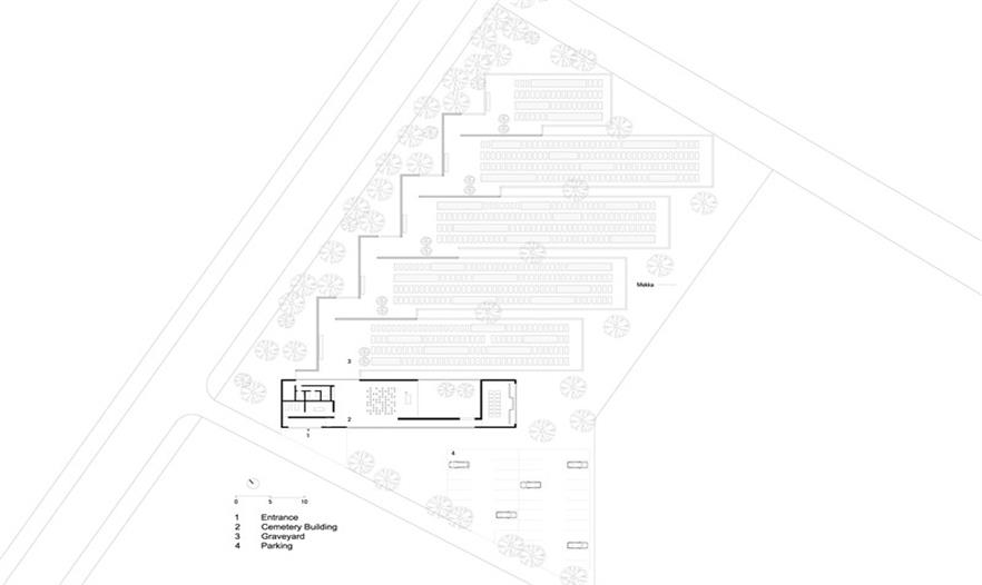 墓地位于奧地利最西側(cè)的州Vorarlberg ,居民中8%的人口信奉伊斯蘭教。設(shè)計(jì)從原始的園林獲得靈感,按照山區(qū)居民的方式采用粉紅色的混凝土墻。建筑包含了5個(gè)矩形的墓地,以及供信徒祈禱集會(huì)的場(chǎng)所。建筑墻身使用的主要材料是清水混凝土,室內(nèi)和入口裝飾材料采用橡木。來訪者必須通過洗禮室和禮堂才能進(jìn)入建筑,這些空間用木質(zhì)的伊斯蘭圖案裝飾,院落的色彩很柔和。位于院落遠(yuǎn)端的禮拜室采用鐵藝裝飾,以阿拉伯文的書法為主題。