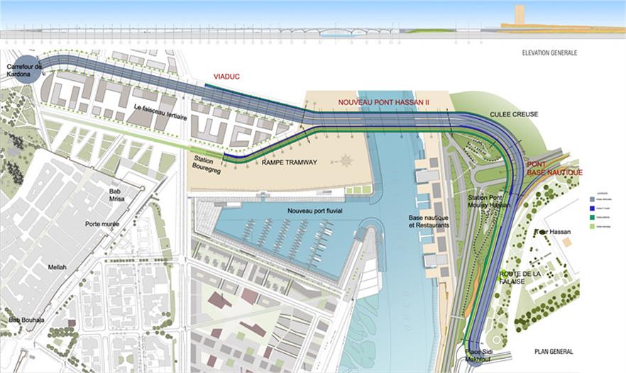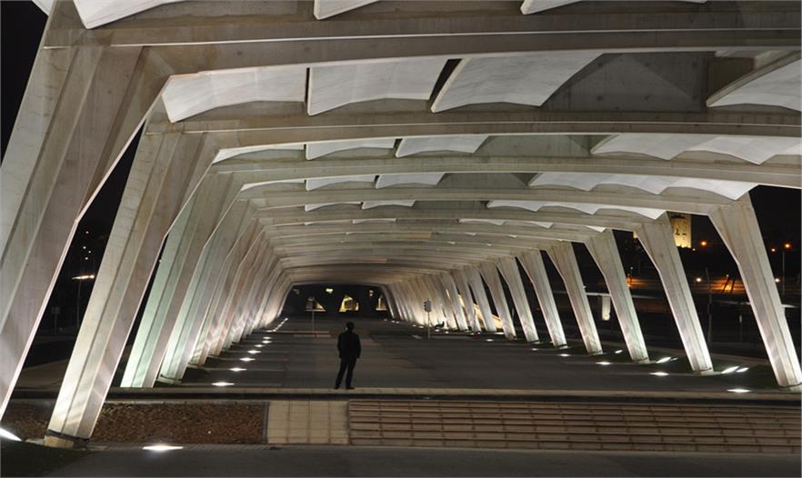 該項目獲得2013年阿卡汗建筑獎提名。作為連接拉巴特與薩累兩座大城市的城市樞紐,哈山第二大橋及其關(guān)聯(lián)項目減輕了城市歷史遺跡及人口的壓力和城市噪聲污染。這項設(shè)計充分地尊重了建筑與自然環(huán)境勢不可擋的水平狀態(tài),使拉巴特的那座12世紀(jì)建成的哈山禮拜塔得以繼續(xù)保留在垂直天際線中的統(tǒng)治地位。混凝土基座在微妙的弧度變化中有如精致的蕾絲裙邊。除了提供交通連接功能,這座橋梁同樣扮演著布賴格賴格河沖積平原的城市屋頂角色,它為市場與休閑活動提供了安全的公共空間。