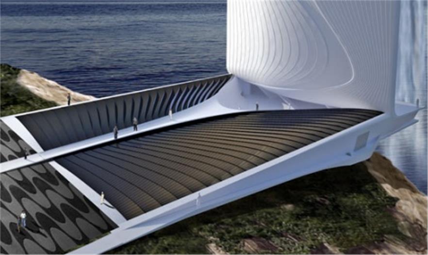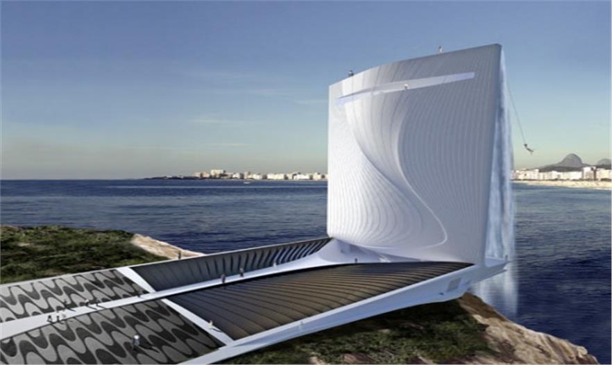 這座由瑞士建筑設(shè)計(jì)公司 RAFFA 所設(shè)計(jì)的“Solar City Tower”太陽(yáng)能瀑布塔是參加競(jìng)標(biāo)的設(shè)計(jì)作品,他們的主要目的是設(shè)計(jì)出結(jié)合地標(biāo)以及建筑意義的“機(jī)器建筑”。這個(gè)建筑將制造一座 105 米高的巨大瀑布,要吸引全世界的目光真可是小菜一碟,同時(shí)它也將是一座利用太陽(yáng)能自給自足的設(shè)備——如同上海世博一些新的環(huán)保主張建筑一樣,太陽(yáng)能所發(fā)的電除了可以用在抽取海水制造瀑布,Solar City Tower 還同時(shí)可以提供能源給里約熱內(nèi)盧的市民使用。設(shè)計(jì)師力求藉由這樣的概念,讓巴西奧運(yùn)成為史上很有代表性的“低碳”奧運(yùn)會(huì)。 具體來(lái)說(shuō),這樣的人工景觀并不多見(jiàn),塔樓上配備了太陽(yáng)能電池面板,太陽(yáng)能轉(zhuǎn)換成電力將海水引導(dǎo)到頂部再放下形成瀑布效果,而在瀑布塔當(dāng)中有露天劇場(chǎng)、禮堂、餐廳和商店等等,還有許多娛樂(lè)設(shè)施,包括高空彈跳和高空行走等娛樂(lè)項(xiàng)目都能提供。這里的游客有 360 度的景觀視角,可以體驗(yàn)瀑布,并走在玻璃上進(jìn)行天空行走。RAFAA 還為奧運(yùn)圣火的點(diǎn)燃儀式與建筑相結(jié)合并提前繪出了 2016 奧運(yùn)圣火傳到 Cotonduba 島的一刻。 入口區(qū)和劇場(chǎng)都可以作為社交聚會(huì)和活動(dòng)的地方。公共空間也從這個(gè)角度看到。餐廳和商店都位于瀑布下方,并提供令人驚嘆的美景。它容納了一座太陽(yáng)能發(fā)電廠,白天為奧運(yùn)村提供電能,多余的電將用來(lái)把海水泵入大廈。夜晚,這些水將重新回到海中,通過(guò)渦輪發(fā)電,用來(lái)為大廈照明或輸送到城市。