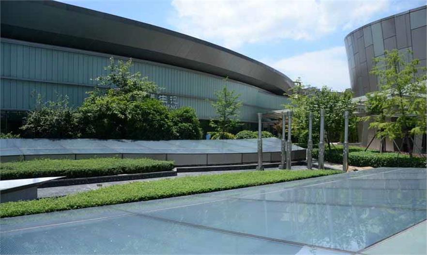 萬象城一期占地約4公頃,總建筑面積近24萬平方米,是杭州目前最大的商業(yè)綜合體。萬象城屋頂綠化近1萬平方米,通過精心的設(shè)計(jì),布置了綠化、游步道、木橋、觀景平臺(tái)等多種景觀元素,形成了多個(gè)景觀節(jié)點(diǎn)。模擬自然地貌的屋頂空間與模擬山間峽谷的室內(nèi)空間一脈相承,屋頂花園以一道“天河”及“觀景平臺(tái)”為主,波光閃爍的“天河”穿過建筑主體,劃分出動(dòng)態(tài)與靜態(tài)融會(huì)的景觀意念。“天河”上架一座水晶般透亮的玻璃橋,從橋上走過,靜靜的水面倒映出快樂的身影。