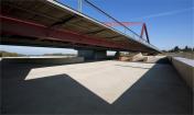 Vroenhoven大橋總長度為195米。甲板由寬度為3.25米的人行道和自行車雙車道組成。橋面的總寬度為18.5米。主要結(jié)構(gòu)橋系統(tǒng)由兩個變量高度的鋼梁組成這些橫梁一方面用于交通繁忙的行人或騎自行車的分離,另一方面將橋梁固定到最確切的位置。