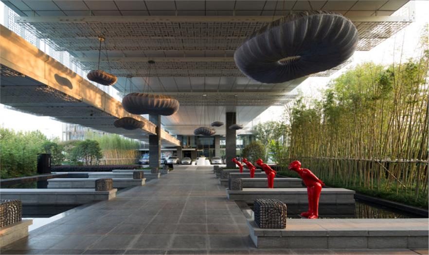 該計(jì)劃的核心是一個(gè)藝術(shù)畫廊的“橋梁”,超過(guò)60米長(zhǎng)作爲(wèi)門檻的一個(gè)大姿態(tài)。一個(gè)嚴(yán)謹(jǐn)?shù)恼{(diào)查研究了中國(guó)的屏風(fēng),以及生成定制的模式,其中包括建筑師巧妙的開發(fā)者的標(biāo)志。這些屏幕使用消失建筑群和上允許的觀點(diǎn)在某些領(lǐng)域,而基于覆蓋的內(nèi)部程序要求其余部分。