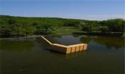 這個(gè)項(xiàng)目站立在湖中心,參觀者必須通過一條寬45cm長(zhǎng)14m的通道才能到達(dá)湖心建筑,這個(gè)空間讓人們重新思考運(yùn)動(dòng)的意義并體會(huì)行走的時(shí)間感受,在建筑內(nèi)部參觀者只能看見從地面縫隙中滲透過來的“湖水的顏色”,水和太陽(yáng), 這個(gè)空間讓我們深刻的去觀察并體會(huì)這兩個(gè)對(duì)生命至關(guān)重要的元素。