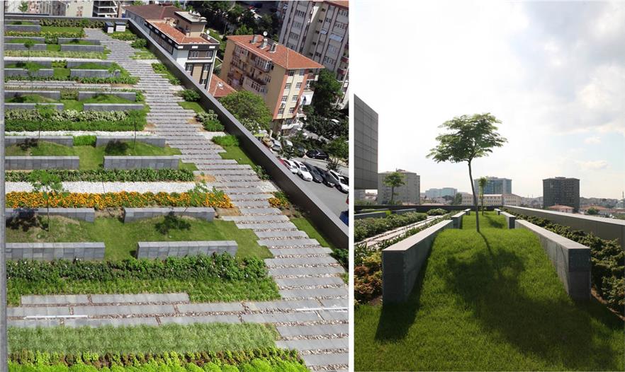 土耳其伊斯坦布爾的特朗普大廈是城市的標(biāo)志性建筑物,其天衣無(wú)縫的與城市景觀和周?chē)h(huán)境融合,便捷的與地鐵站連通。DS Landscape主要在這個(gè)雙塔項(xiàng)目中主要設(shè)計(jì)了主入口景觀與裙房景觀。這系列設(shè)計(jì)包含公眾和私人兩類(lèi)型領(lǐng)域,同時(shí)以線性設(shè)計(jì)貫穿整個(gè)設(shè)計(jì)。植物和硬質(zhì)材料在線性的形式下發(fā)生碰撞,增強(qiáng)了花園的立體感受,又為人們提供自然的路徑。不同模式的組合,使得場(chǎng)地?zé)o論在水平抑或垂直方向都具有流動(dòng)性。人們?cè)诰坝^中,或在高樓上俯瞰花園,都能領(lǐng)略花園那簡(jiǎn)約而不失內(nèi)涵的魅力。
