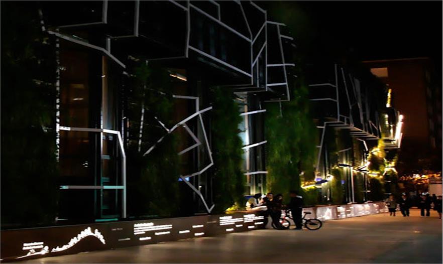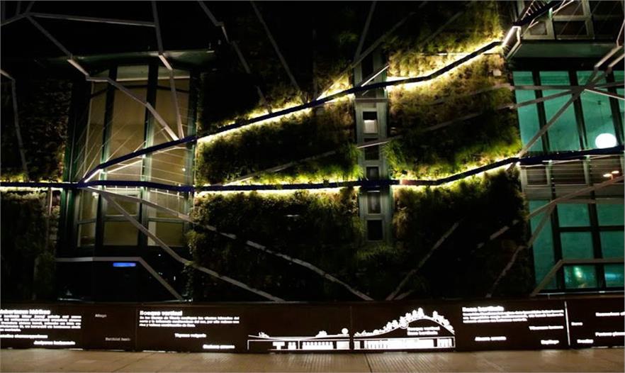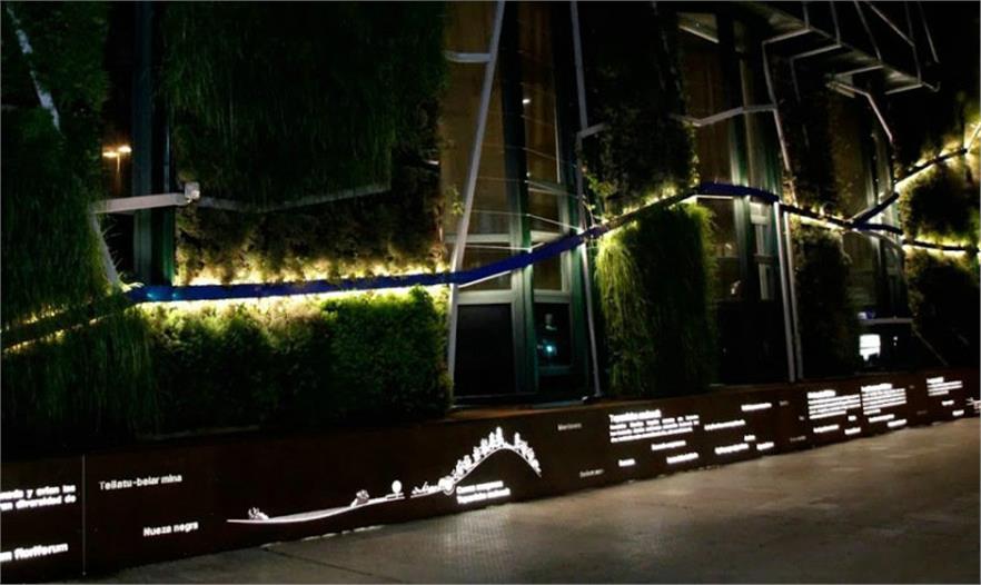 垂直花園在晚上會利用節(jié)能的LED燈進行照明。 這在維多利亞的中心——Gasteiz創(chuàng)造了一個氛圍獨特的散步區(qū)域。該項目不僅可以提供學習各種植物信息的環(huán)境,同時也可以為市民提供一個放松的對話空間。