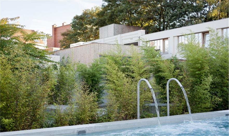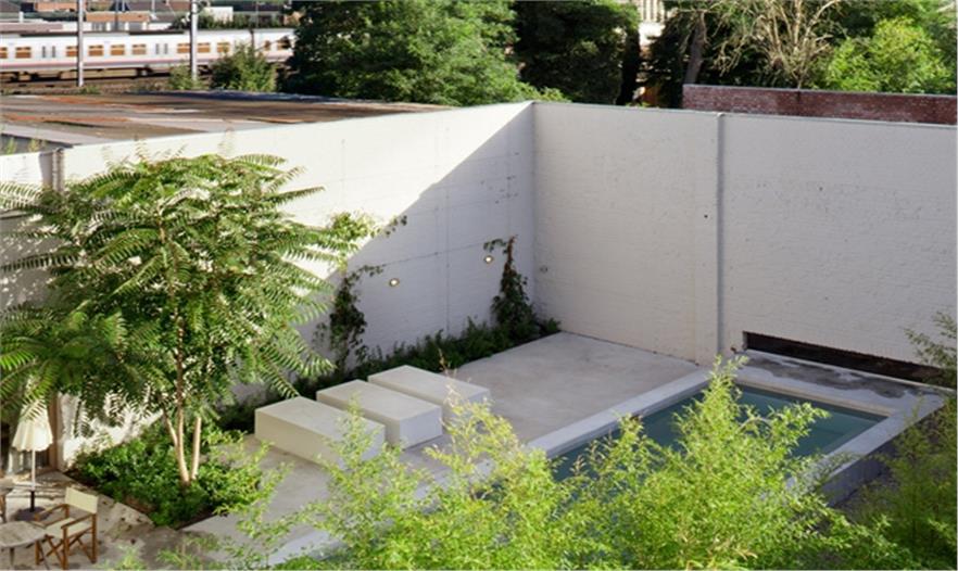 景觀師與建筑師密切合作,在各方面特別是材料上達到和諧統(tǒng)一。老工業(yè)混凝土的地板被保留,建筑內(nèi)外墻色彩統(tǒng)一,室內(nèi)外的木材看起來也是同一種材料。一個很好的例子,水療中心的屋頂涼亭和儲物柜的材料來源于回收的木腳手架。景觀師與建筑師共同造就了這個內(nèi)外模糊的整體場所。