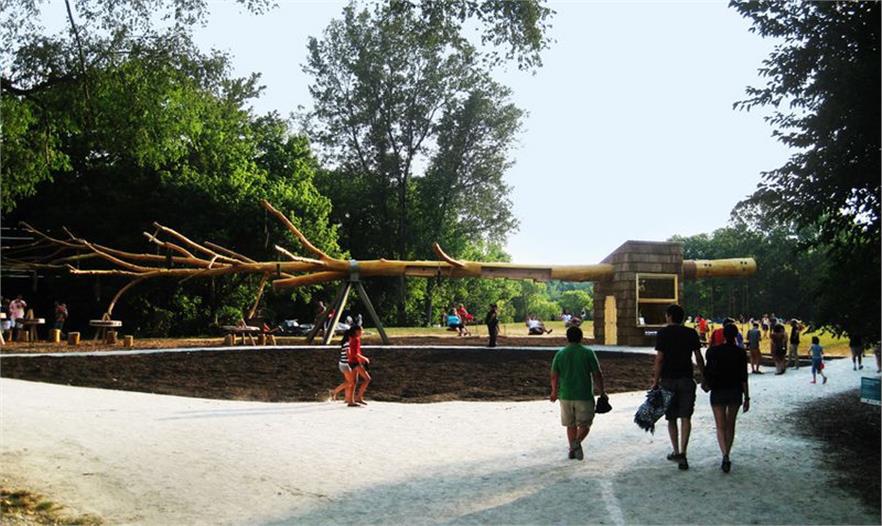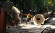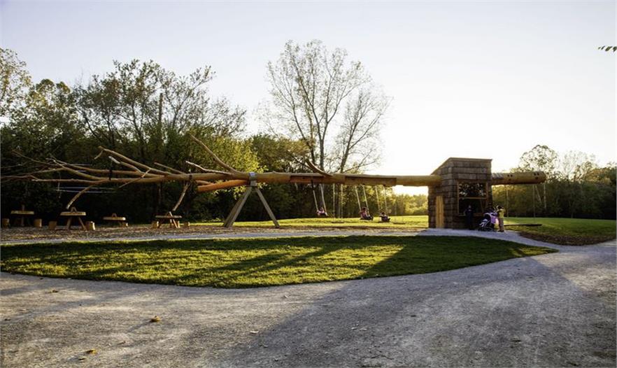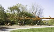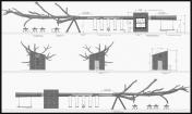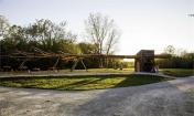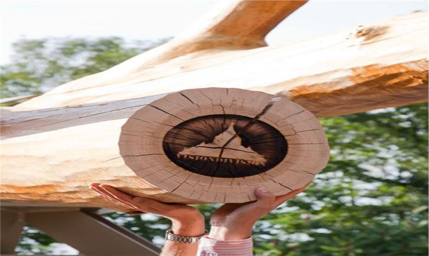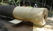 這個(gè)建筑選擇的原料是一顆100英尺的黃楊樹(shù)(黃楊樹(shù)是印第安納州的州樹(shù),樹(shù)形優(yōu)美,作為硬木,可形成規(guī)模和良好的屬性)。Visiondivision決定將它轉(zhuǎn)換成一個(gè)有用的建筑。 這棵黃楊樹(shù)被轉(zhuǎn)移到公園里,由于作業(yè)過(guò)程中會(huì)自然產(chǎn)生濕氣,導(dǎo)致樹(shù)木縮小和樹(shù)皮脫落。工匠們將樹(shù)皮風(fēng)干后鋪設(shè)到建筑表面,將樹(shù)干切成標(biāo)準(zhǔn)長(zhǎng)度,做成水平梁的結(jié)構(gòu),小心地堆放并放置在建筑上,在壓力下可以避免樹(shù)干卷曲。余下的樹(shù)枝窯干到適當(dāng)?shù)乃趾俊⑾竞蟠鎯?chǔ)直到準(zhǔn)備使用。黃楊樹(shù)的樹(shù)皮是一種非常耐用的材料,可以持續(xù)使用80年,建成后的小賣部被親切的成為“排骨棒”。